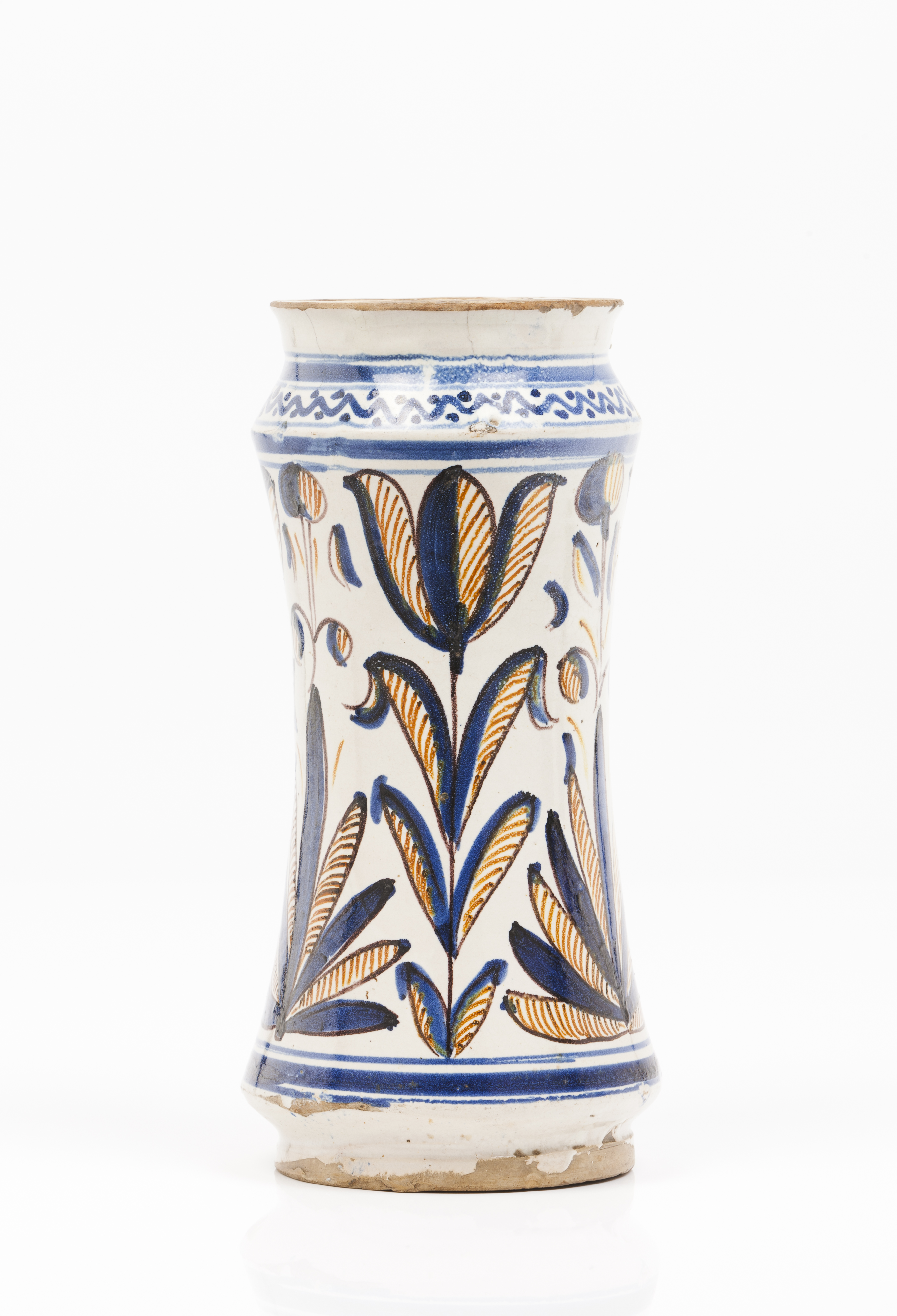 Blue and manganese foliage motifs decoration