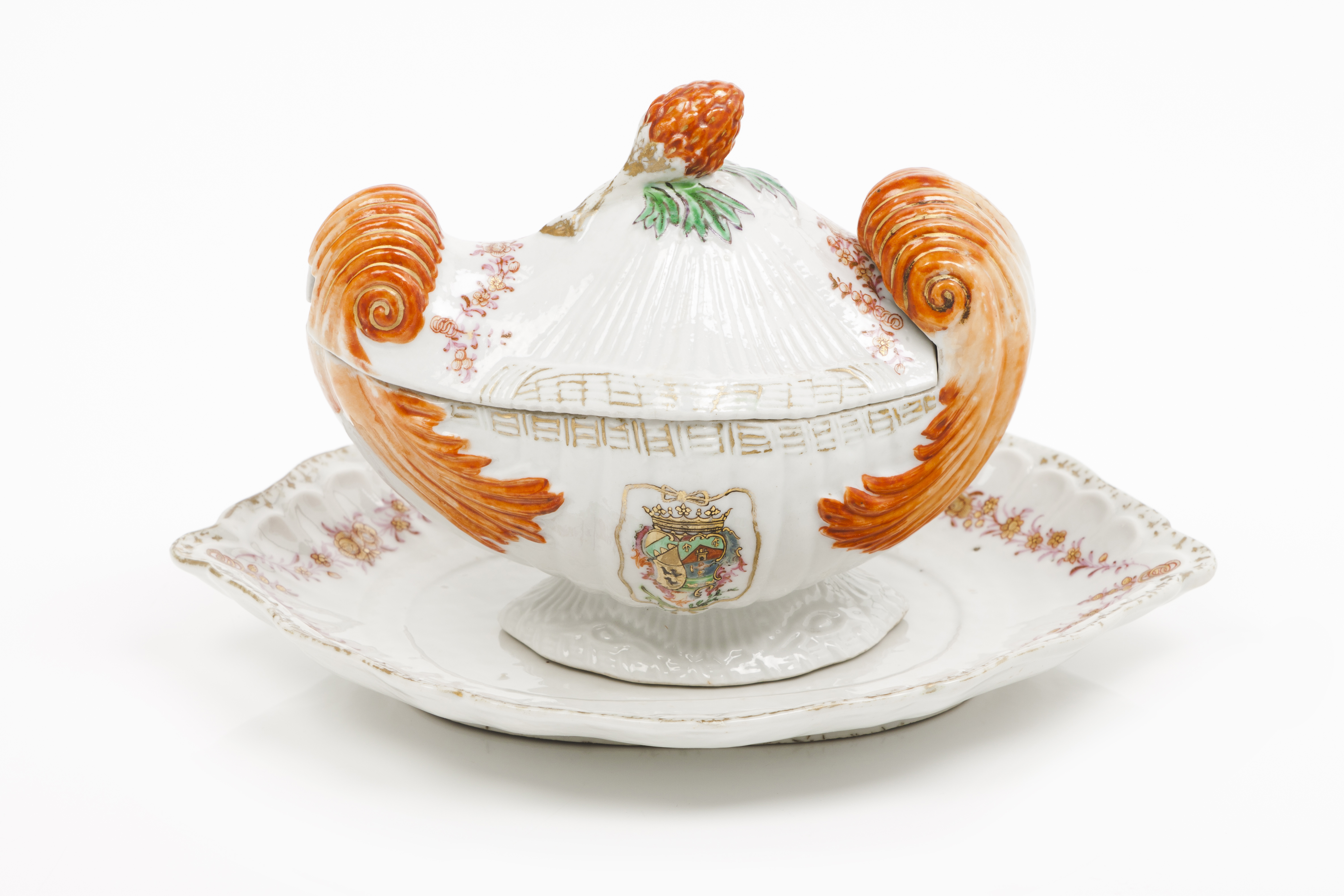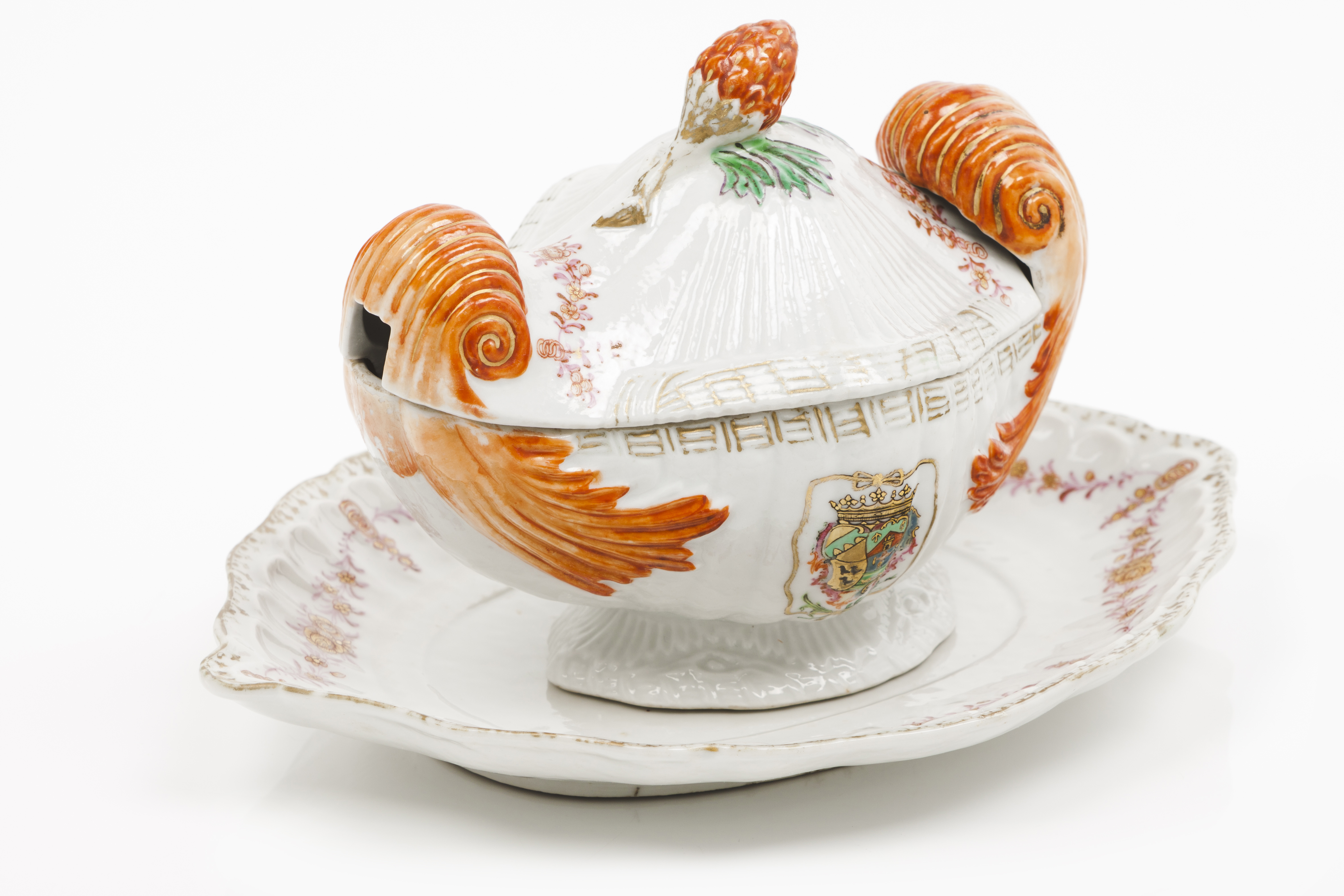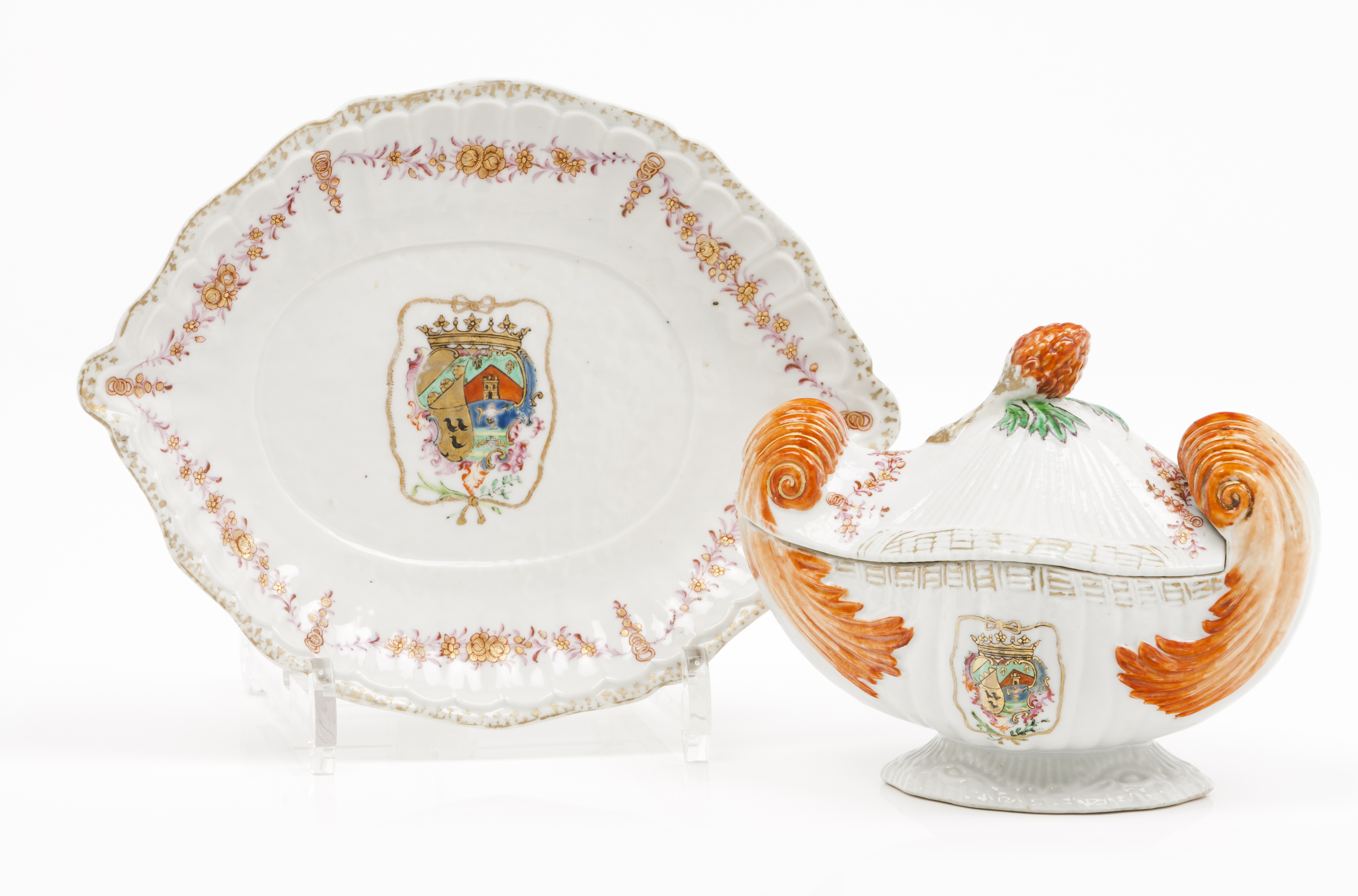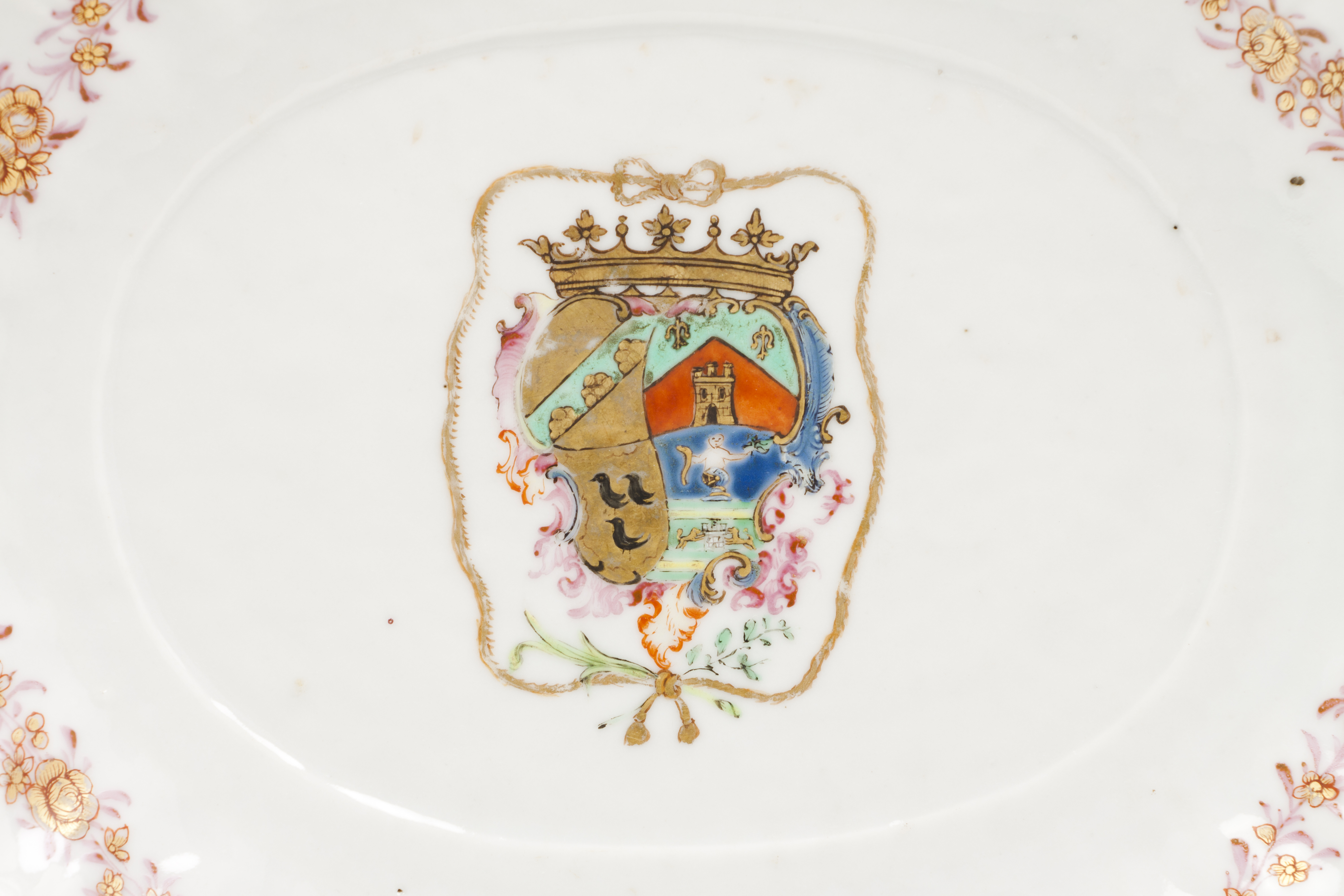 Moulded and polychrome "Famille Rose" enamelled decoration with armorial for Juana Antonia Bucareli Y Baeza, 4th marchioness of Vallehermoso, Grandee of Spain