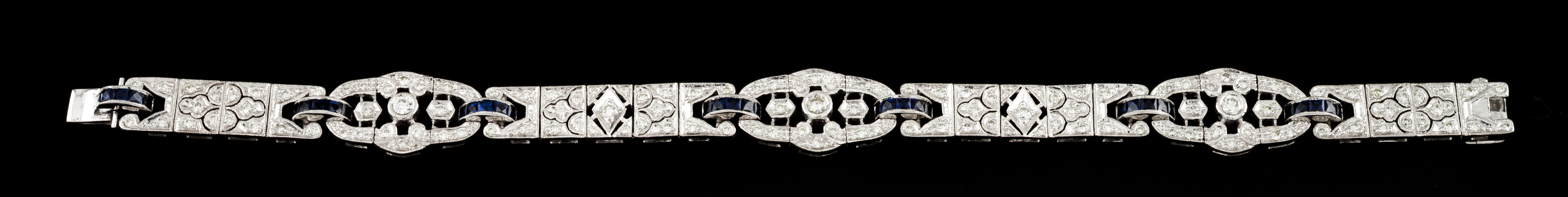 Lace decoration links set with brilliant cut diamonds and calibrated sapphires
