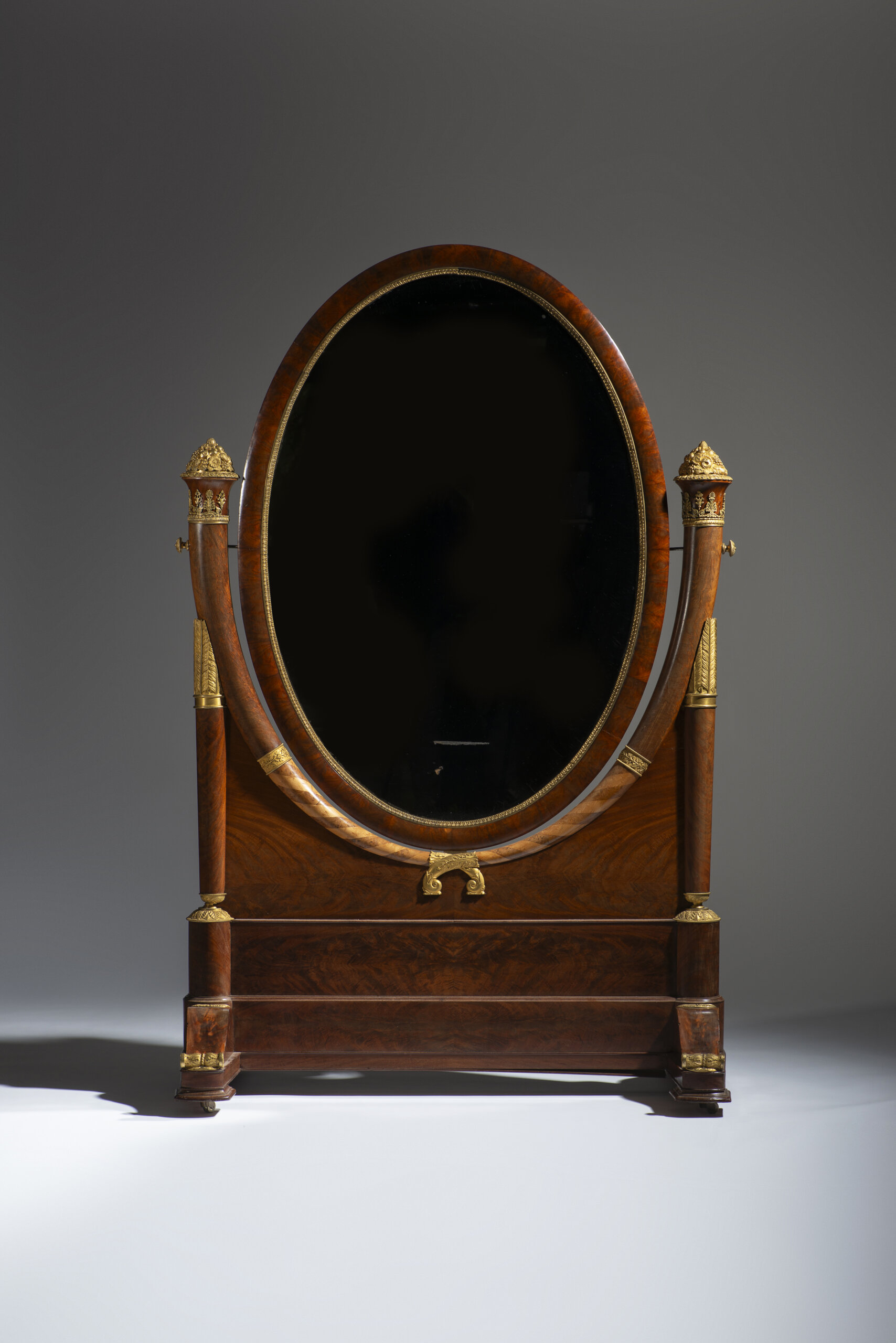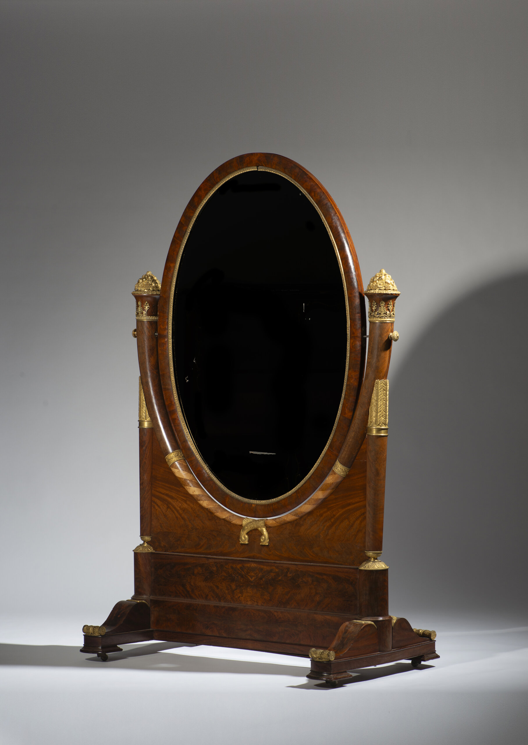 An Empire ormolu-mounted mahogany cheval mirror, attributable to Jacob Frères
