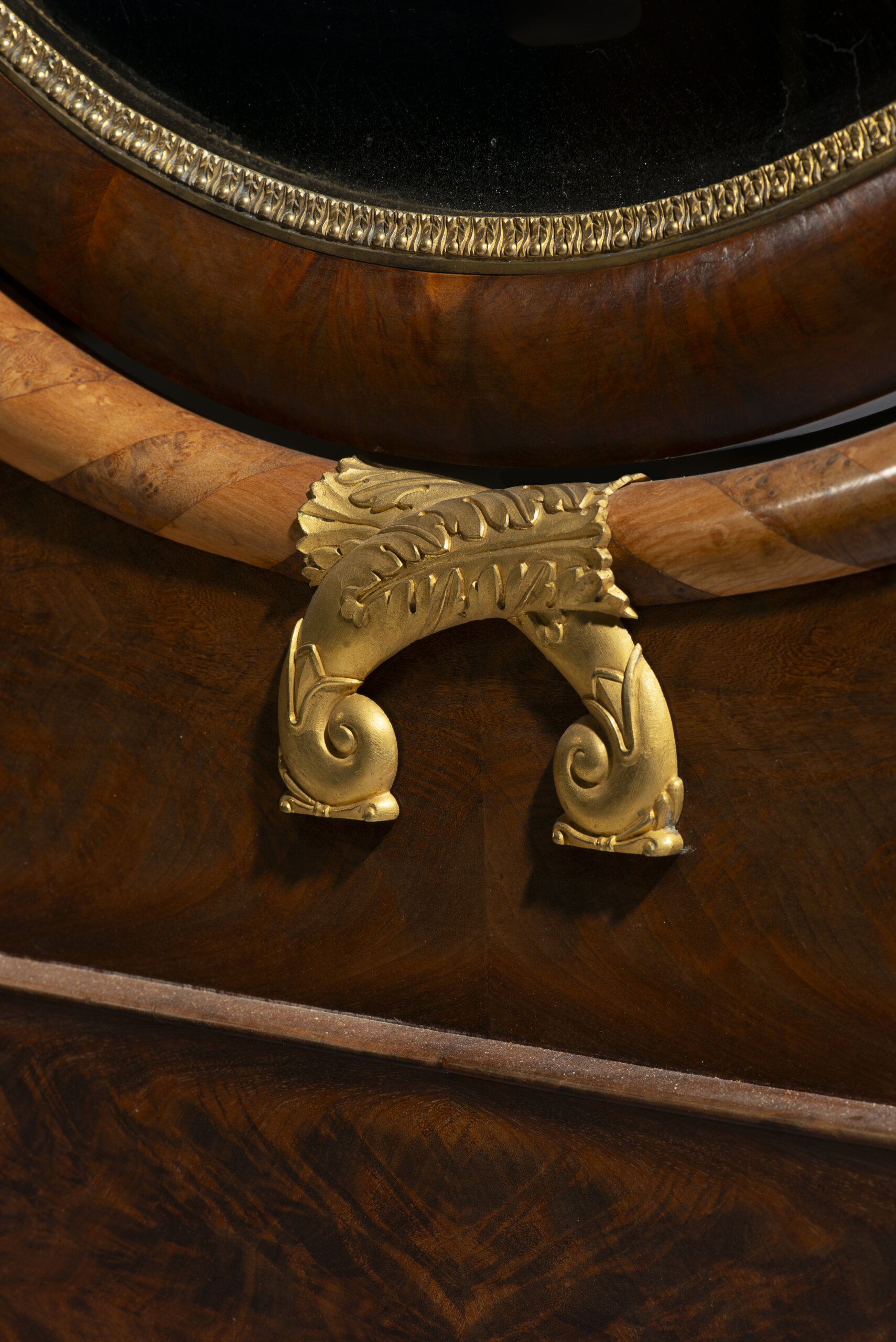 The refinement of execution in pieces produced by Jacob Frères is equally evident in the ormolu mounts - in many cases commissioned from prestigious bronziers such as Thomire -, distinguished by finely chased detail and crisp profiles, with a decorative repertoire of palmettes, acanthus, rosettes, swags, and pearl friezes.