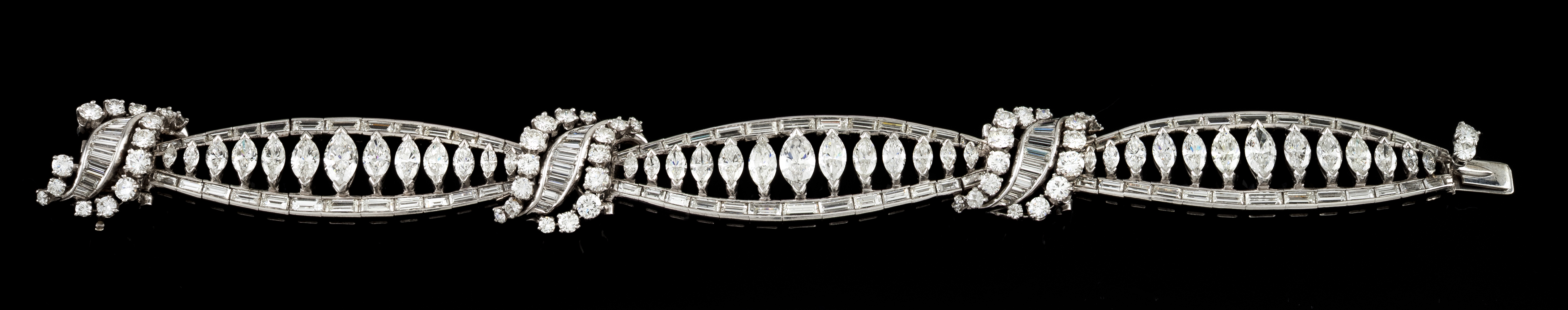 Articulated oblong elements set in the centre with 39 marquise cut diamonds totalling (ca.8.00ct) framed by 78 baguette cut diamonds (ca.4.00ct)