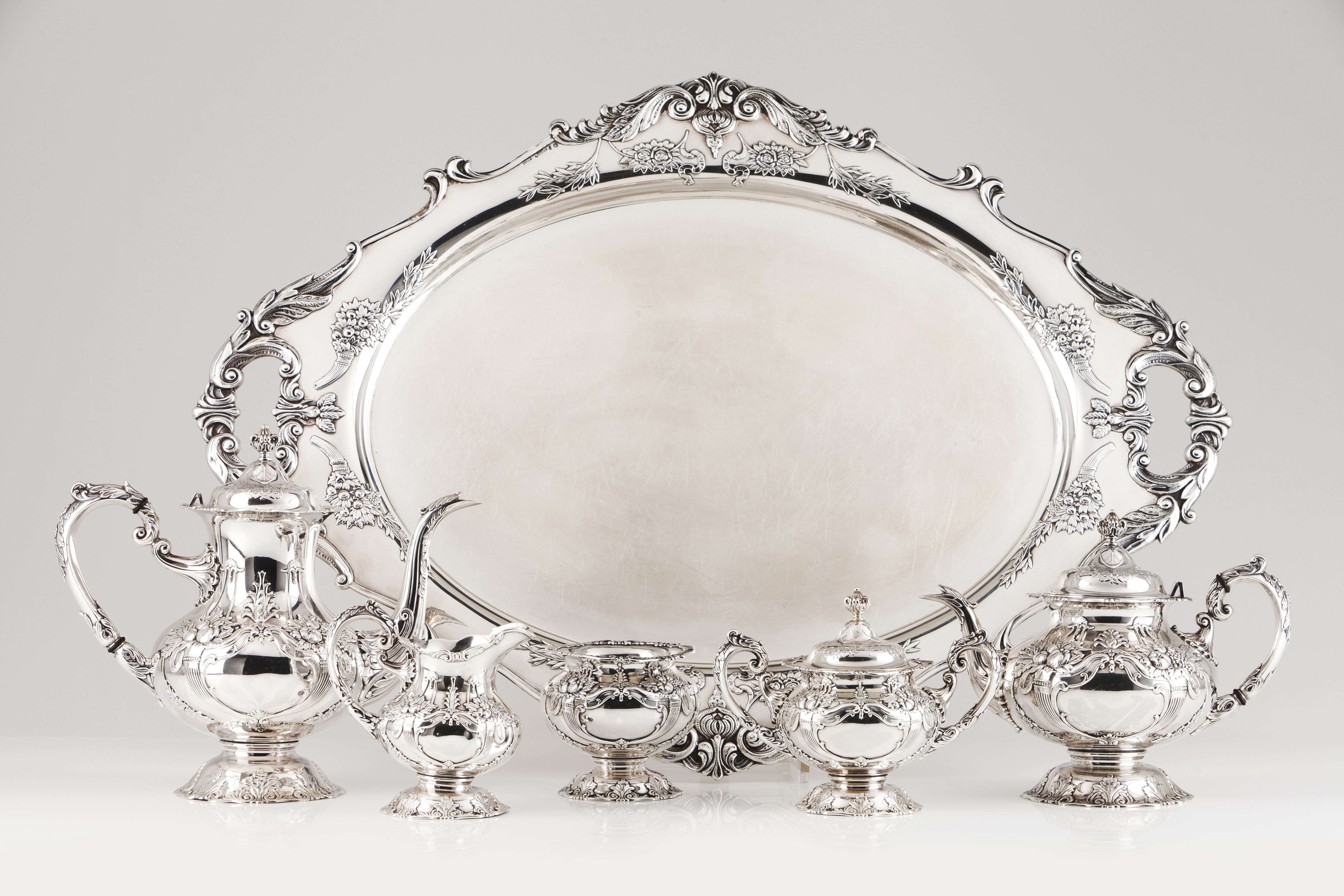 An important tea and coffee set with tray