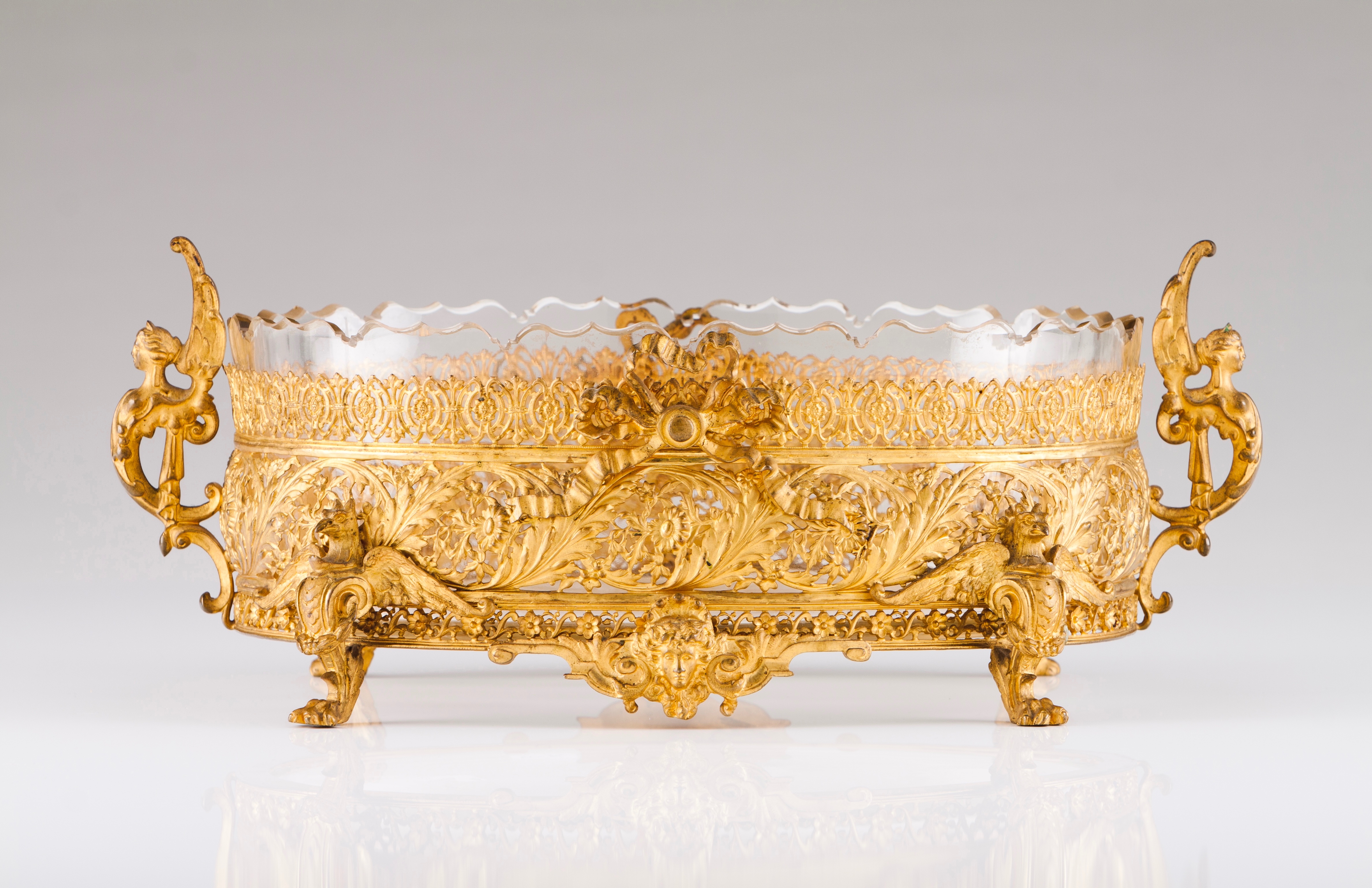Brass, decorated with four griffins, claw feet, two sphinxes and floral motifs