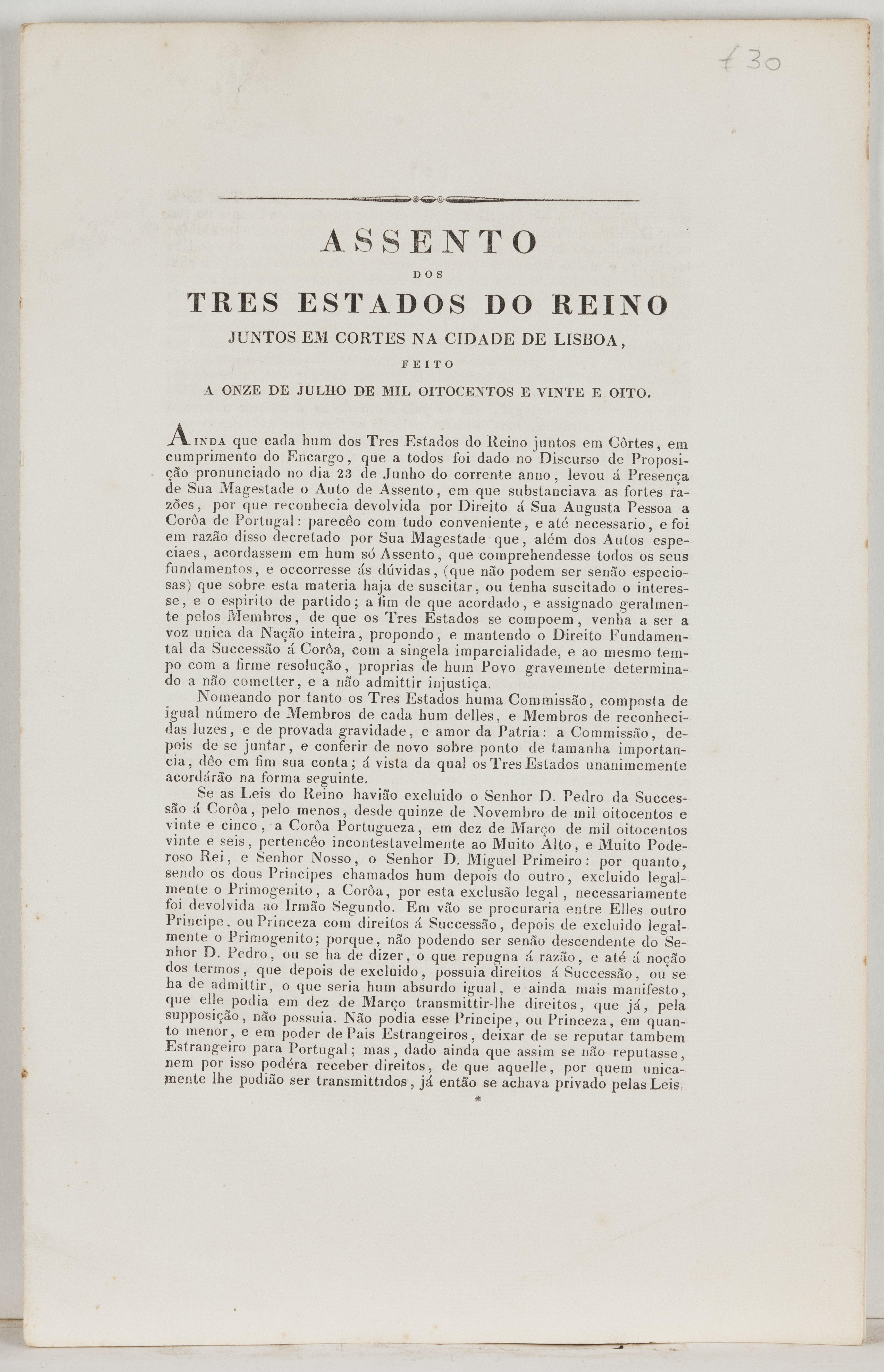 "Assento dos Tres Estados do Reino juntos em cortes na cidade de Lisboa"