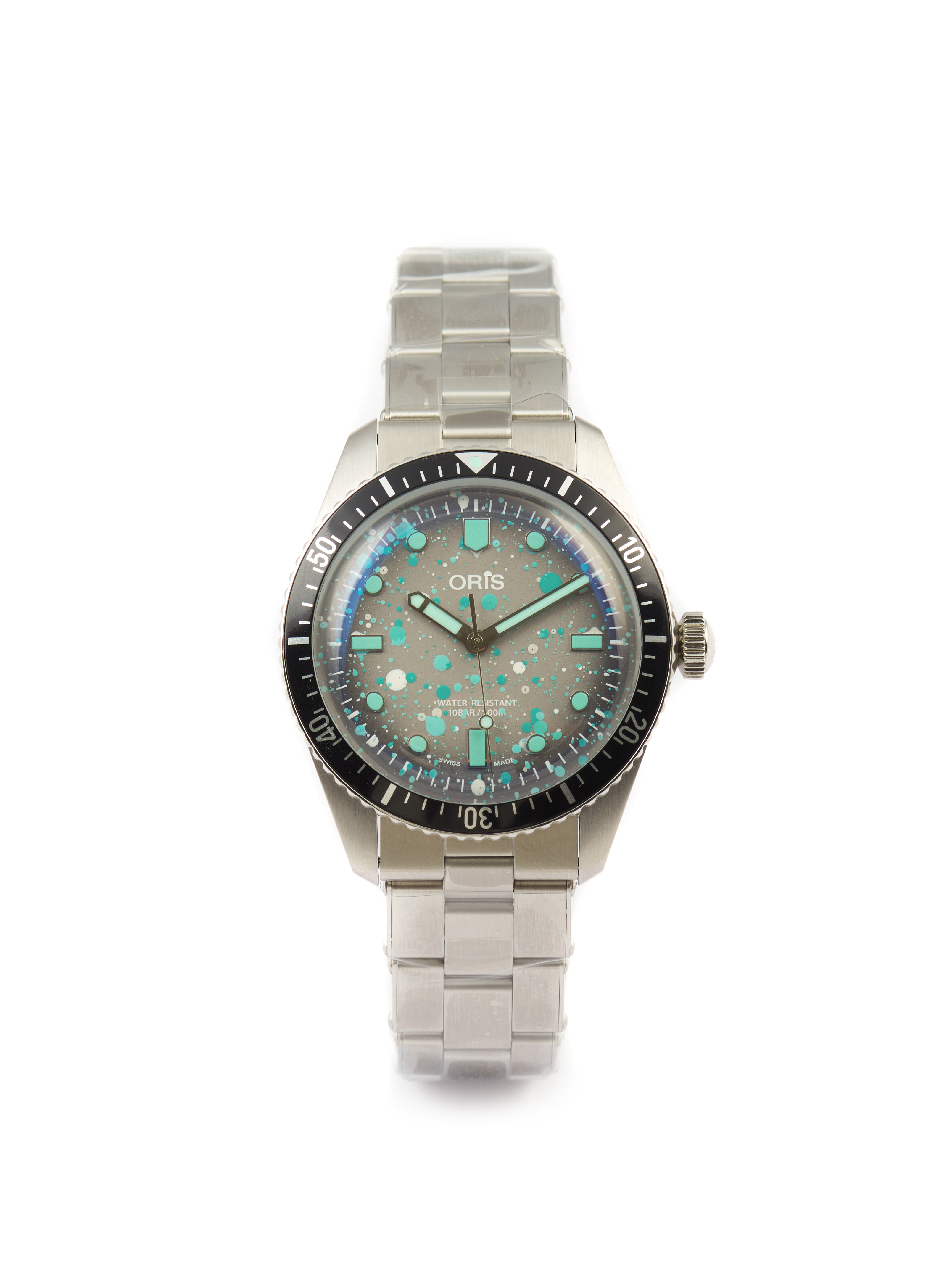 Sixty-Five Tiffany Sky model with the ref. nº 01 733 7707 4053-07 8 20 18. Limited edition of 50 personalized timepieces by the luxury IFLW watch studio. Automatic mechanical movement (cal. sw-200). Handmade painted dial inspired in the northern lights and scandinavian bright colored sky. Stainless steel case and wristband. In excellent condition. With box and IFLW registered documents.