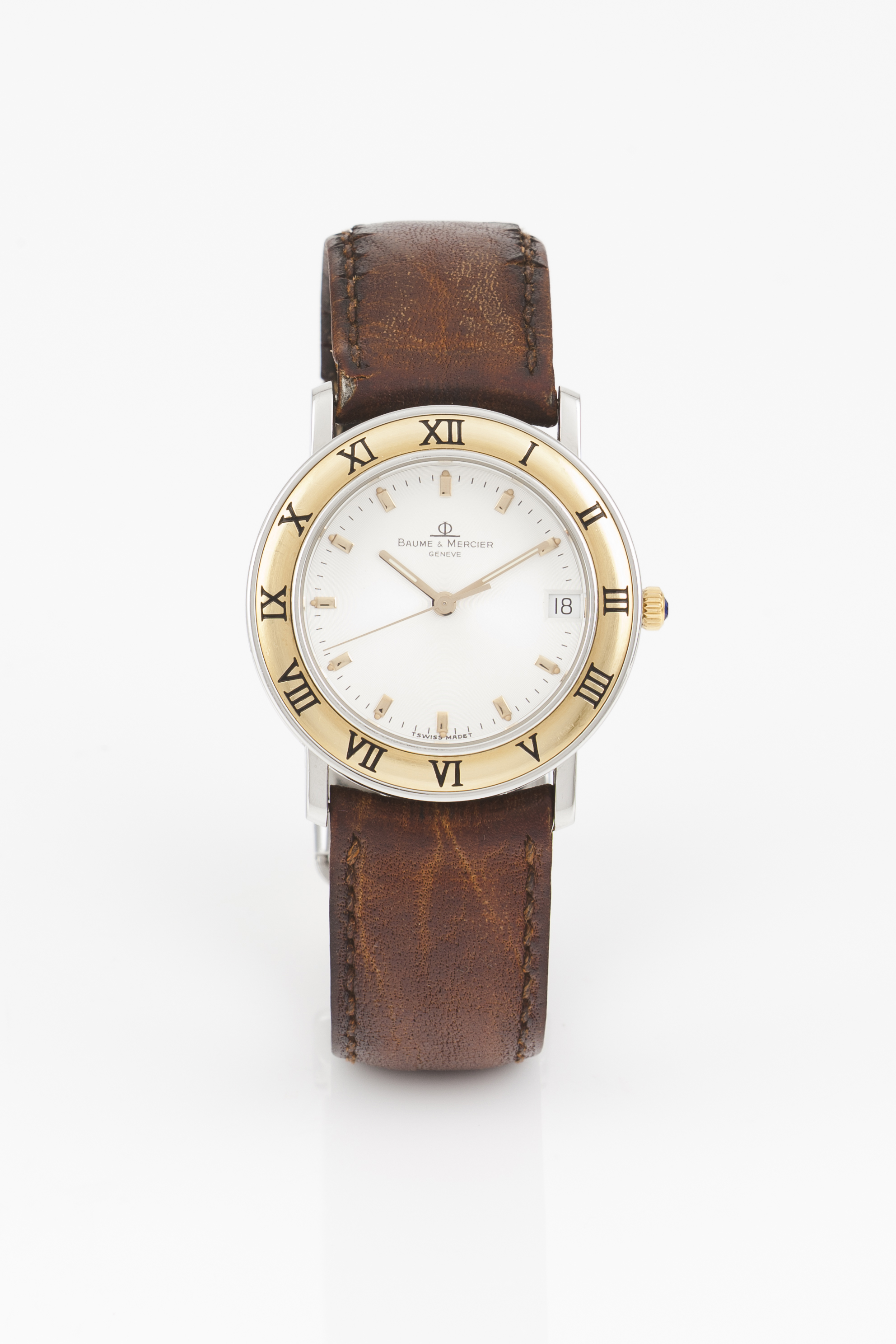 Baume & Mercier watch. Quartz movement with date at 3h. Gold and stainless Steel case. With box and documents. In good condition. Needs a new bracelet.