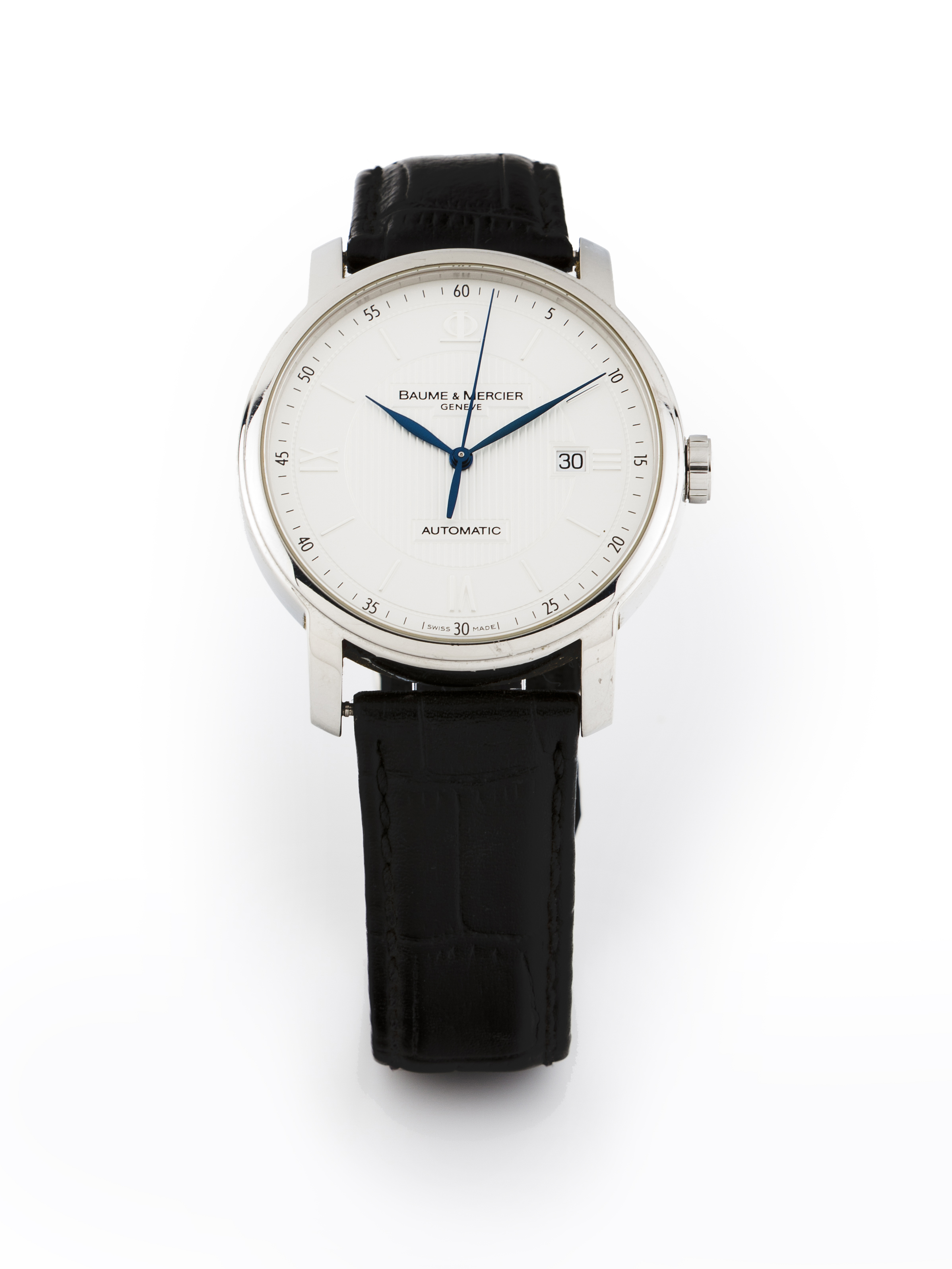 Classima model. Automatic mechanical movement with date at 15h. Stainless steel case with open caseback. With wear signs. With box and documents.