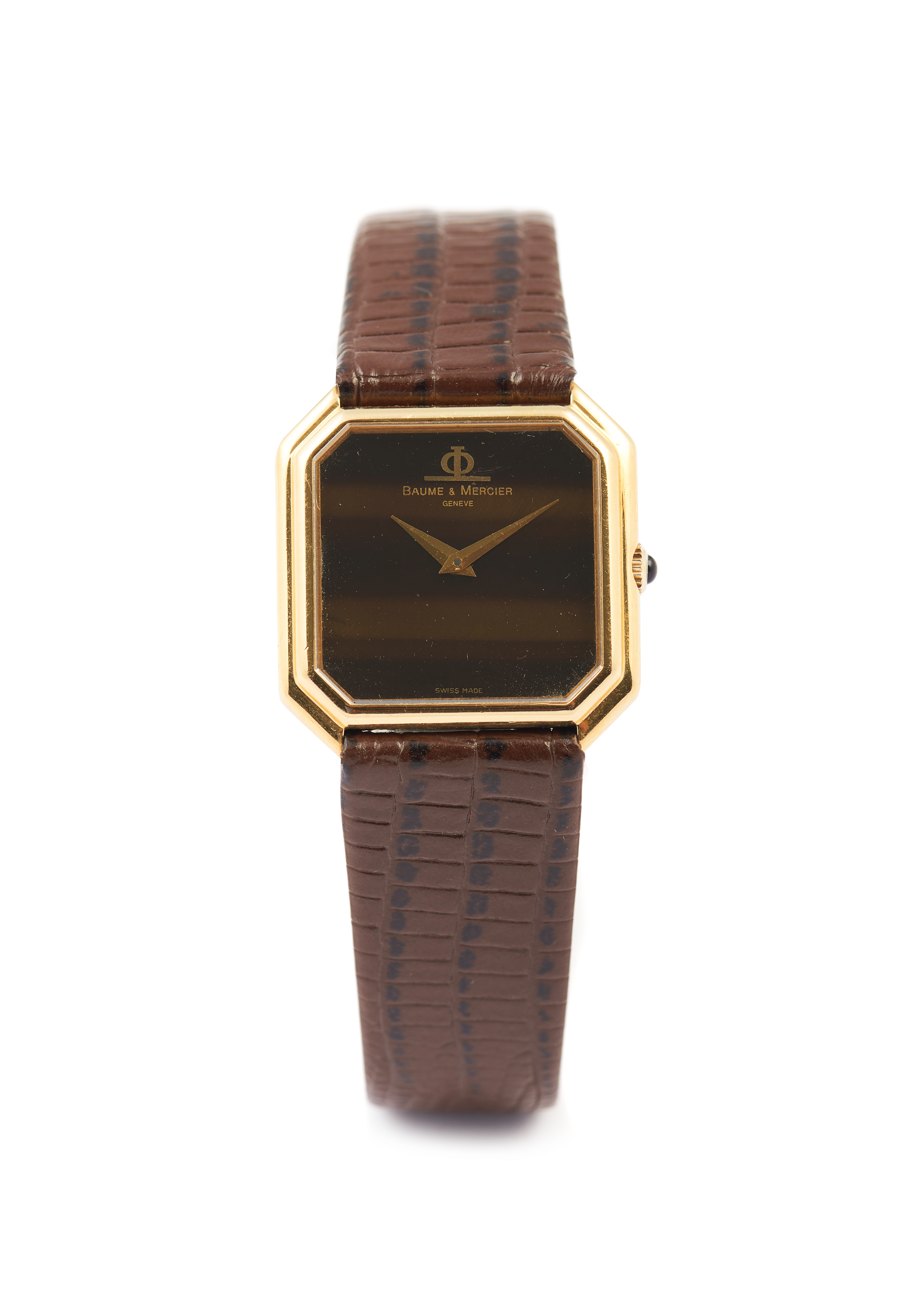 Model with the ref. nº 38260. Winding mechanical movement (Cal. 777). Tiger eye dial. Yellow gold case (750/000) with the ref. nº 827844. In good condition.