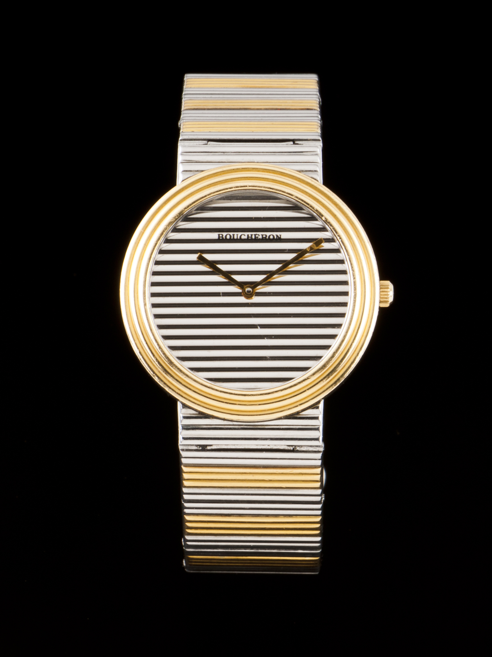 A ladies Boucheron watch with steel and (750/000)t gold case and bracelet. 30mm gold bezel. Quartz movement. With slight wear signs. Working