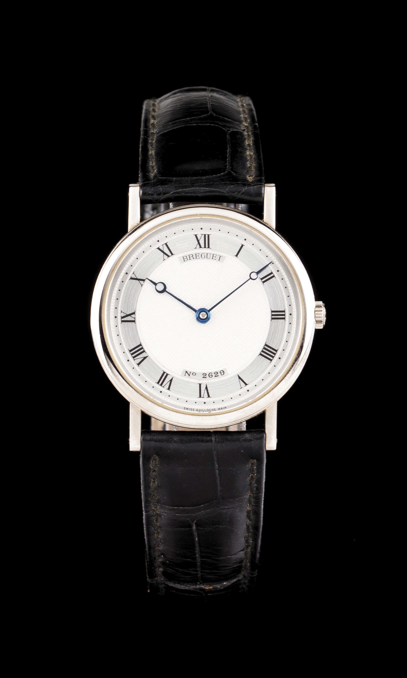 Breguet watch, 3500 ulstraslim model. Winding mechanical movement. Silver made Gilloche dial. Caseand buckle in white gold (0,750). With box and documents. In good condition.