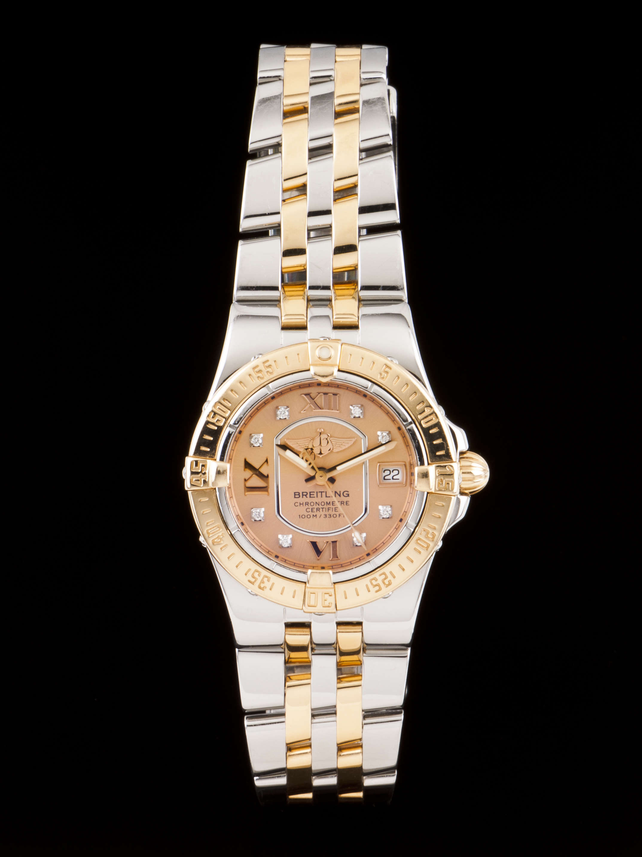 A ladies Breitling Galactic 30 watch, ref. C71340, with steel and (750/000)t gold case and bracelet. 30mm diameter case with gold bezel and dial set with eight diamonds
