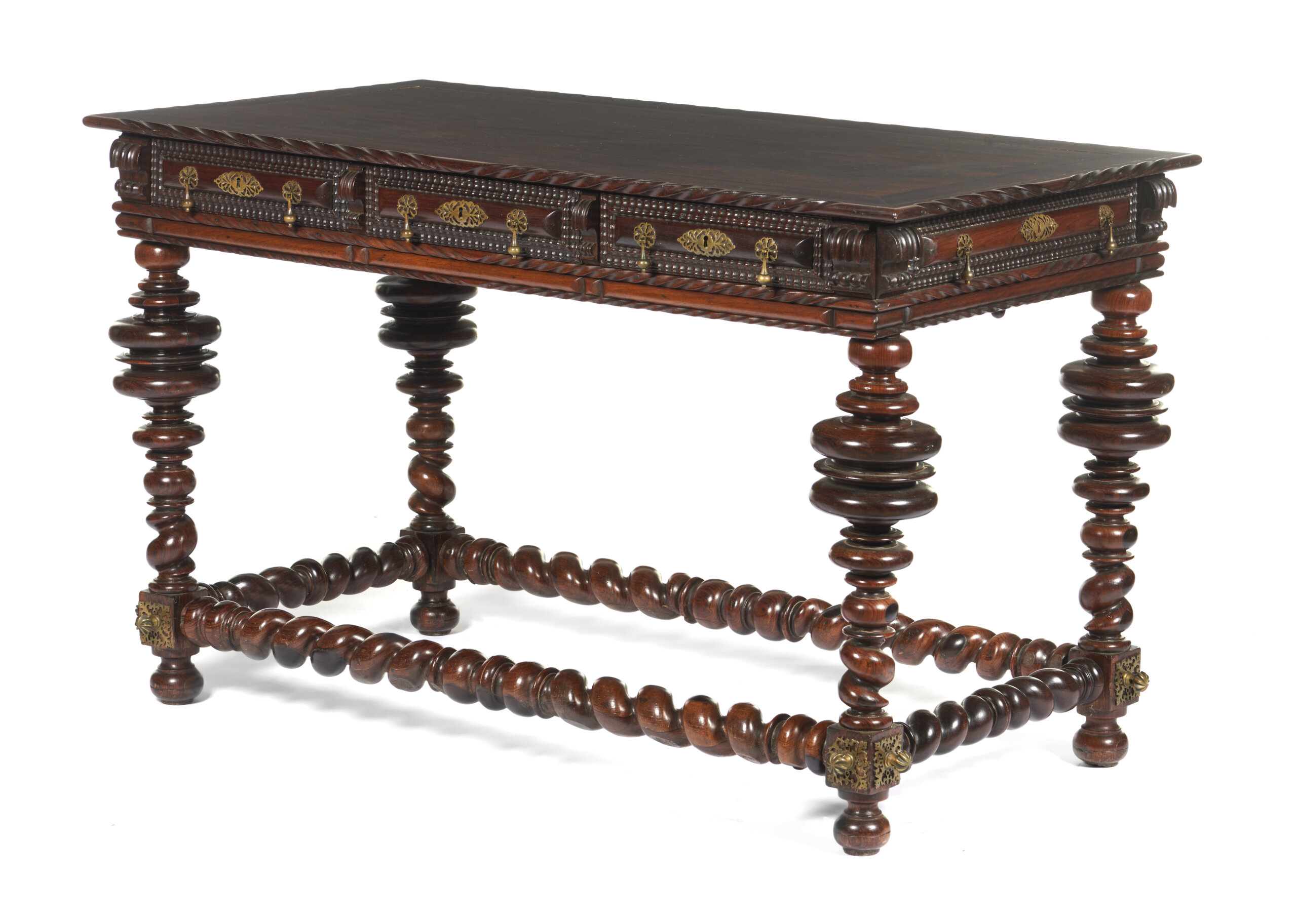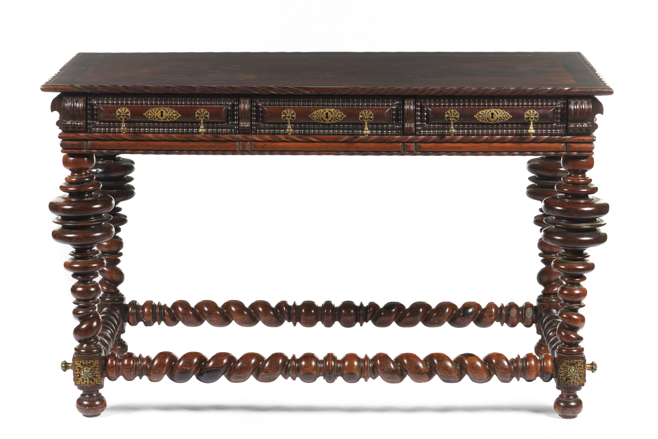 The waist features three drawers, simulating six, with pierced and cut yellow metal mounts
