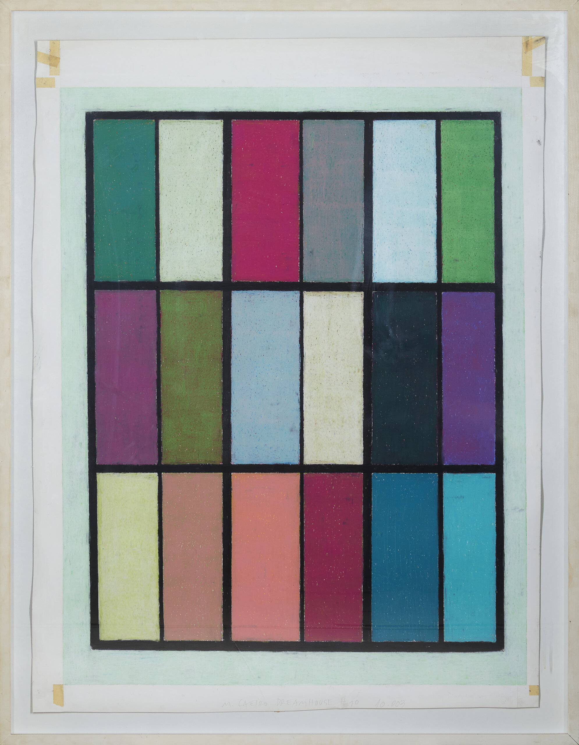 (yellowed painter's tape on the corners of the paper)