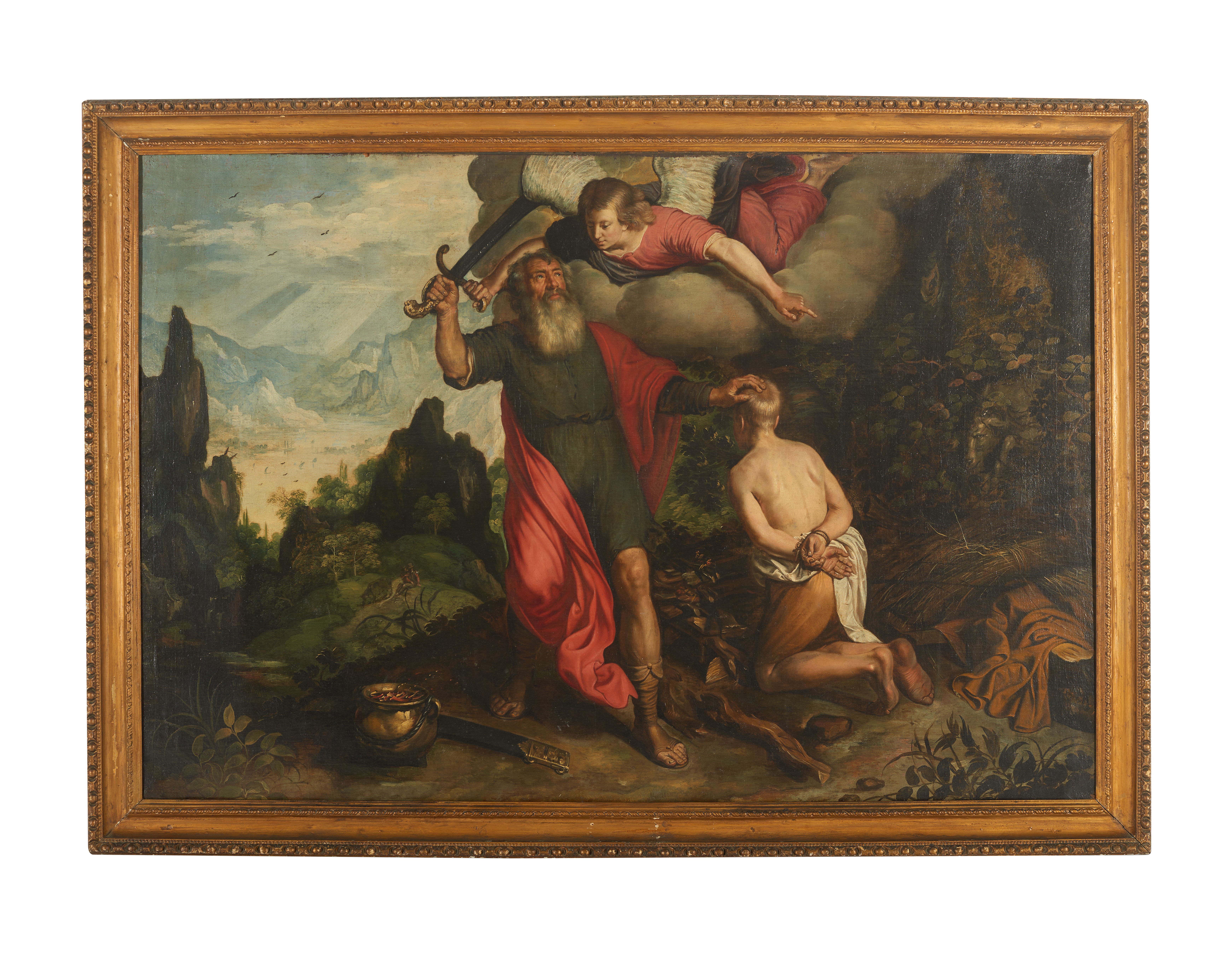 "An angel restraints Abraham from sacrificing Isaac (Genesis 22:10-12)"