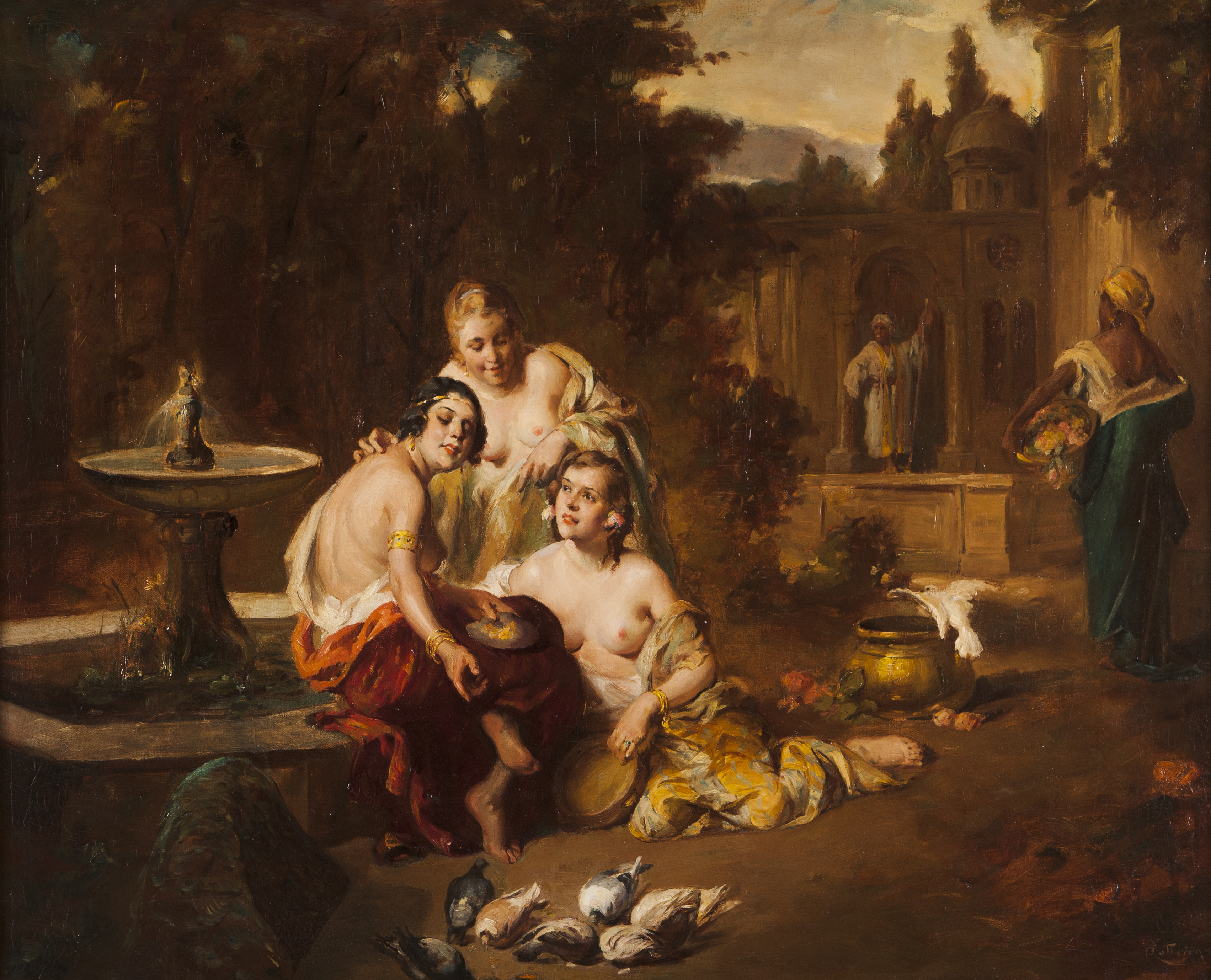 View of a garden with figures