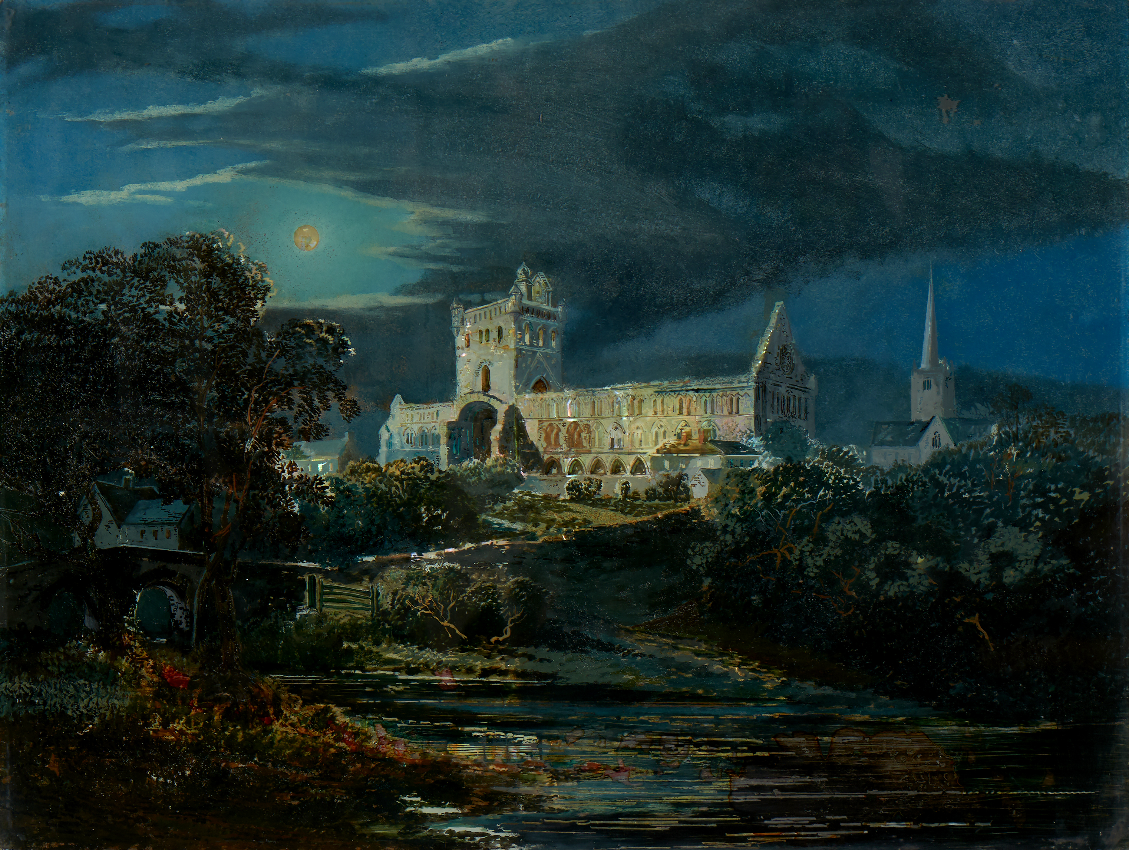 Painting on glass with mother-of-pearl inlaid decoration
