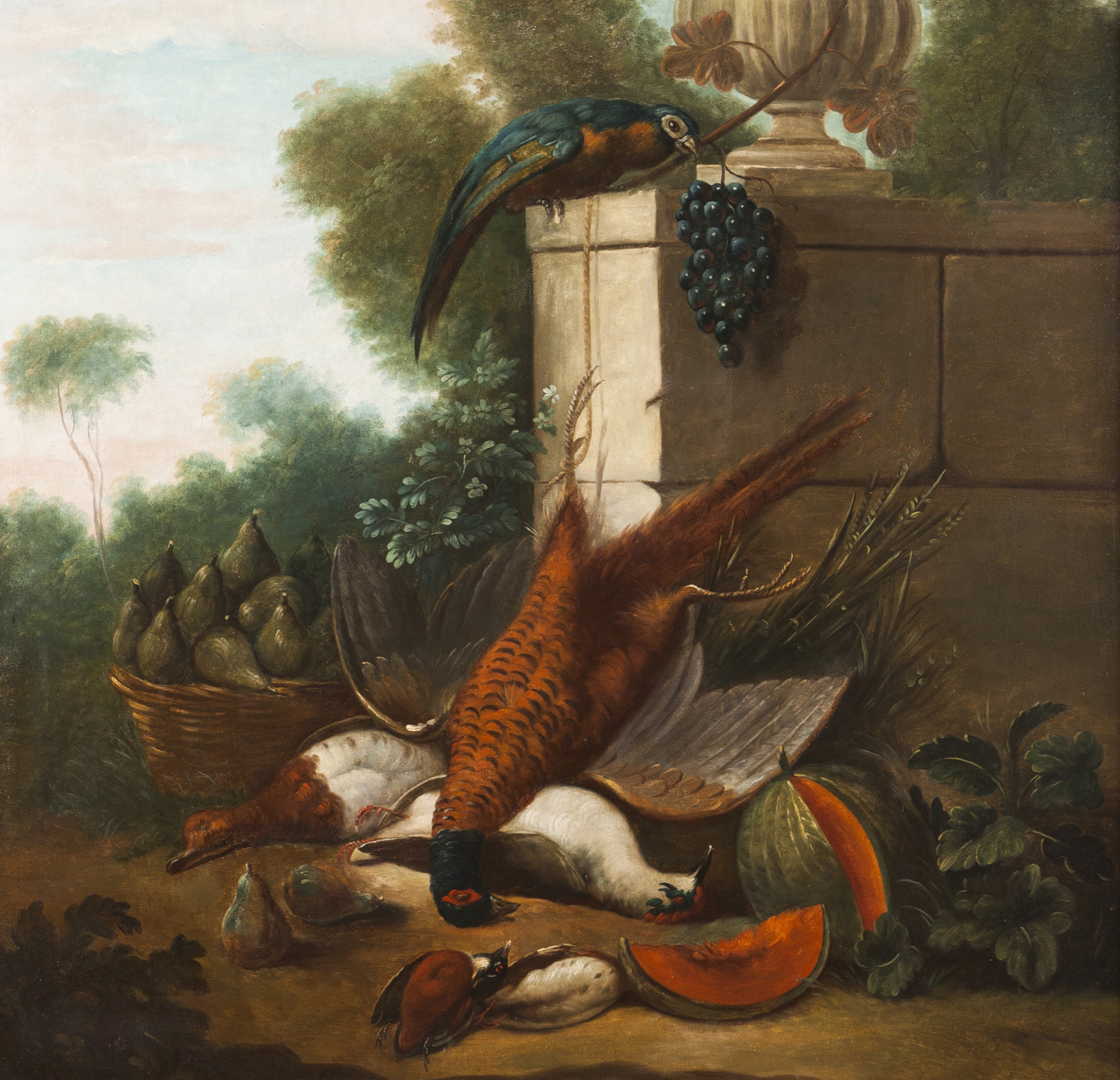 Still-life with hunting trophies and fruits