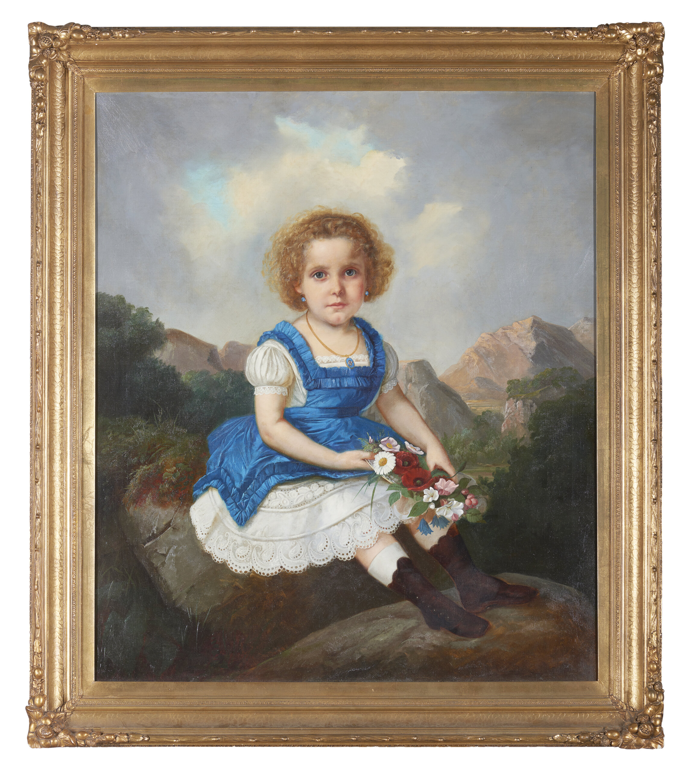 French School, 19th century, portrait of a girl in a blue dress