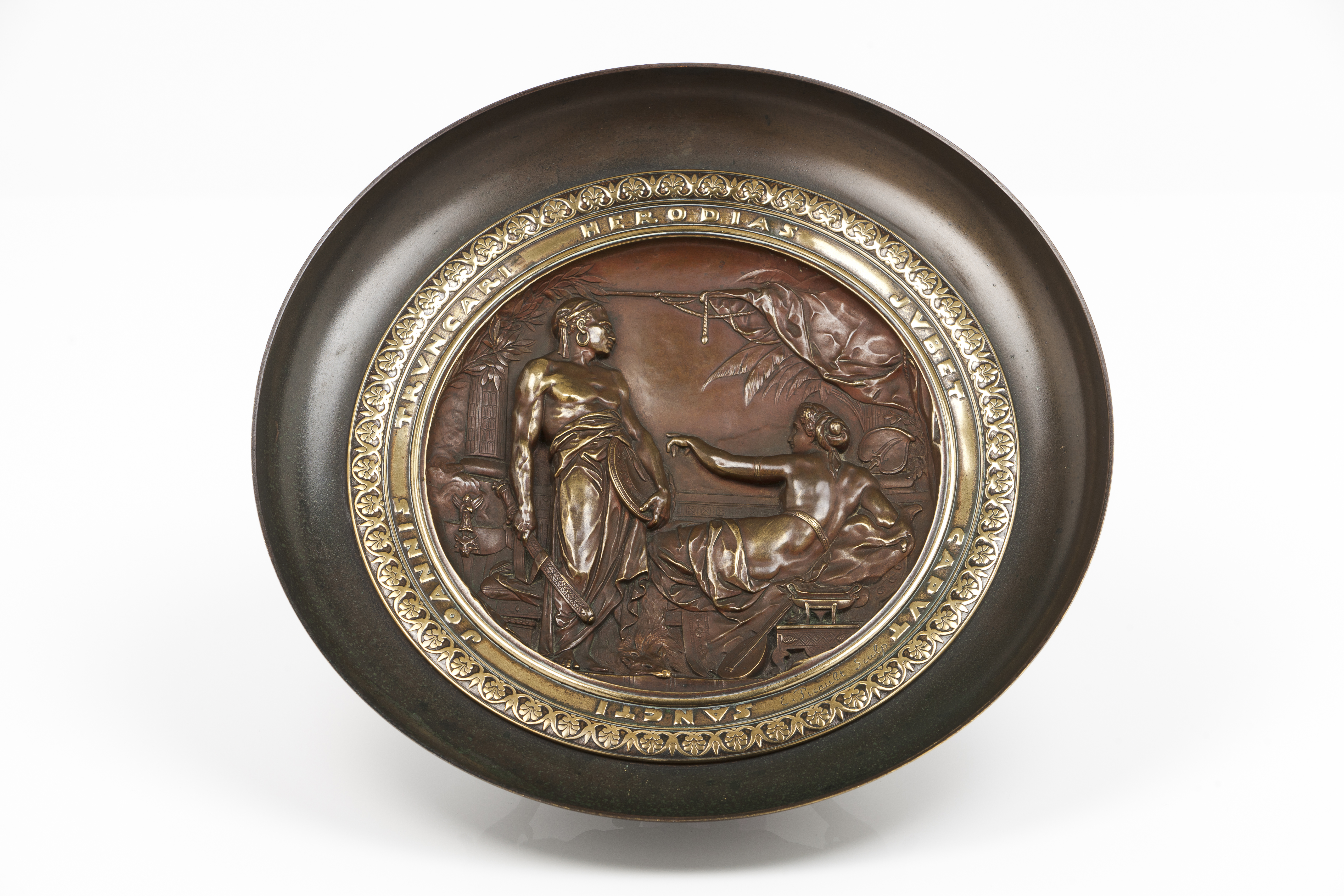 In the centre a depiction of Herod with slave inscribed "SANCTI JOANNIS TRVNCARI HERODIAS JVBET CAPVT", signed E.Picault, for Émile Louis Picault (1833-1915)
