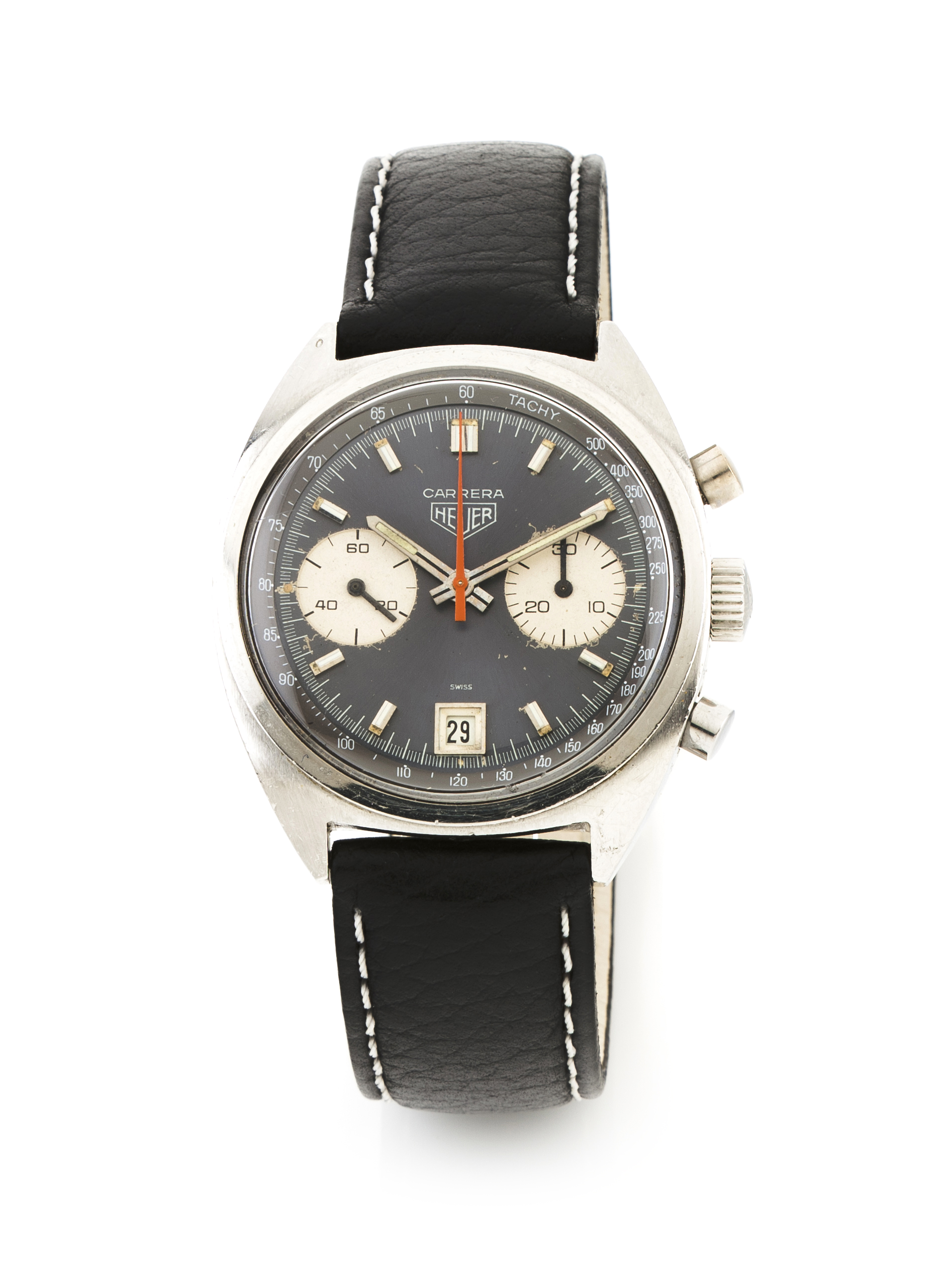 Carrera model with ref. Nº7853. Winding mechanical movement (Valjoux 7734) with chronograph function and date at 18h. Stainless steel case. With wear signs.