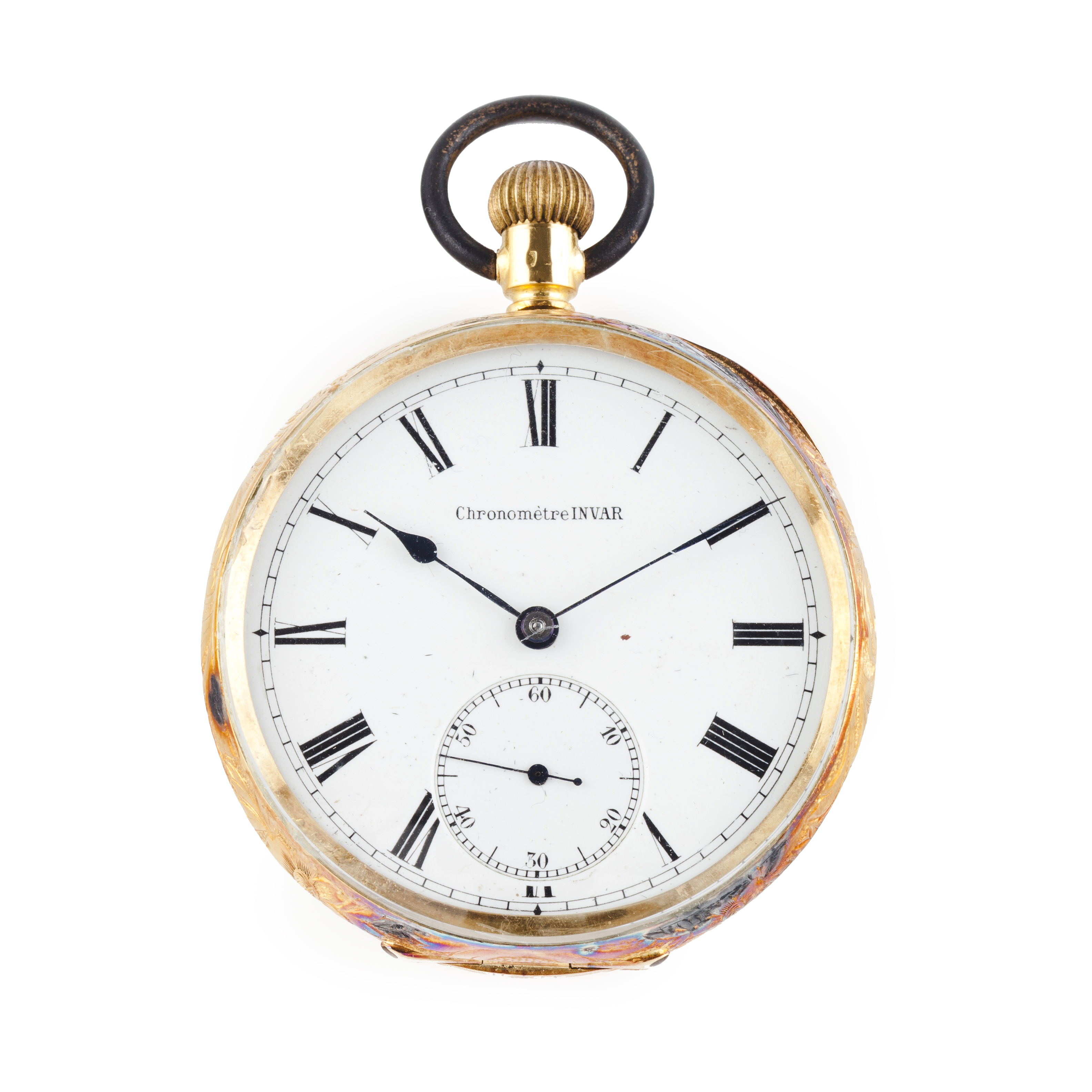 Pocket watch. Winding mechanical movement with micro-adjustment mechanism. Yellow gold (750/000) case with 2 covers. Dial with roman numerals. With wear signs.