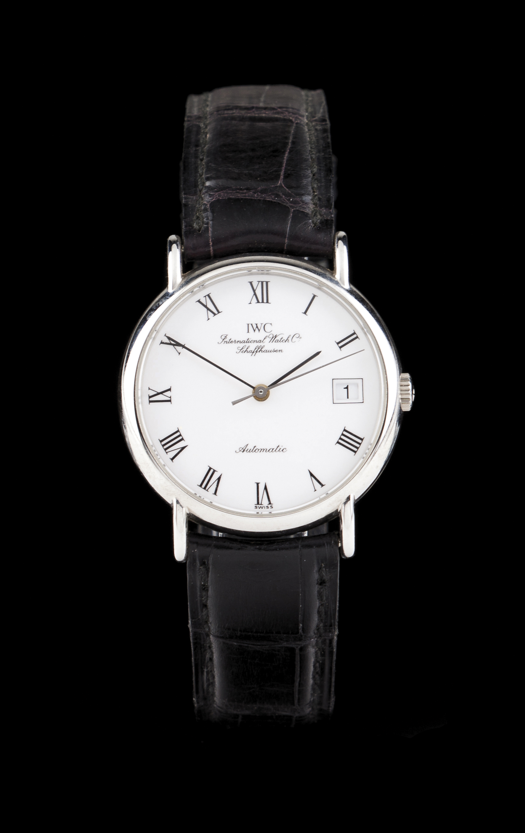 IWC watch. Winding mechanical movement with date at 3h and centre seconds. Stainless steel case. Ceramic dial. In good condtion.