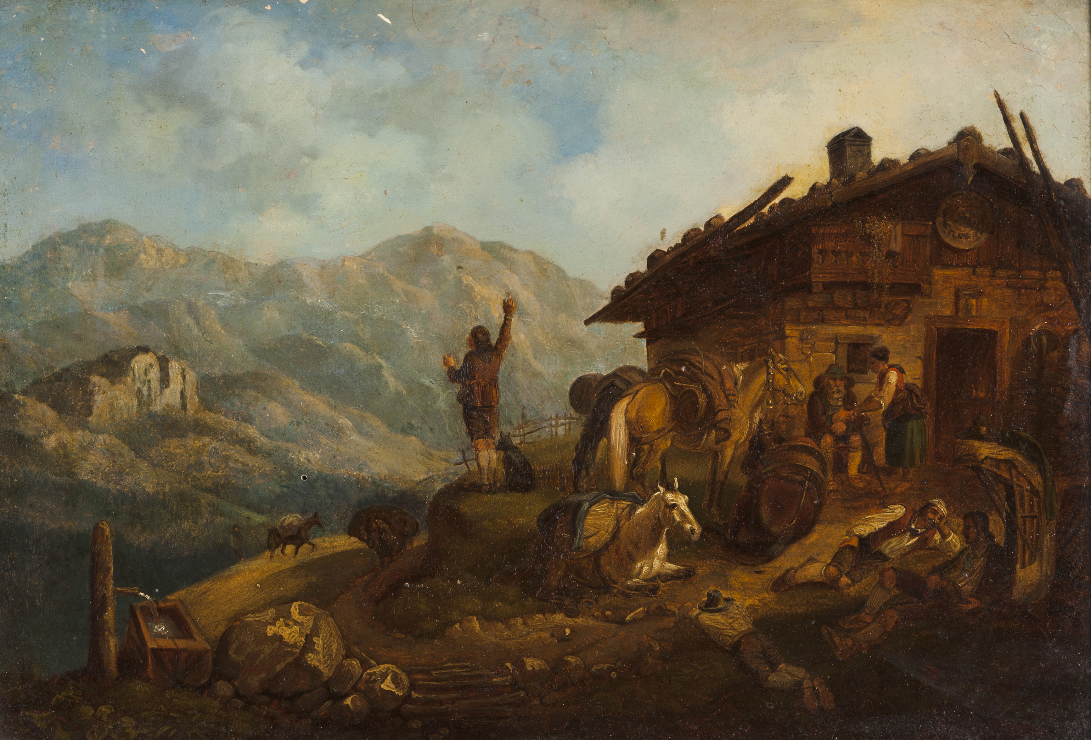 Landscape with mountain, buildings and figures