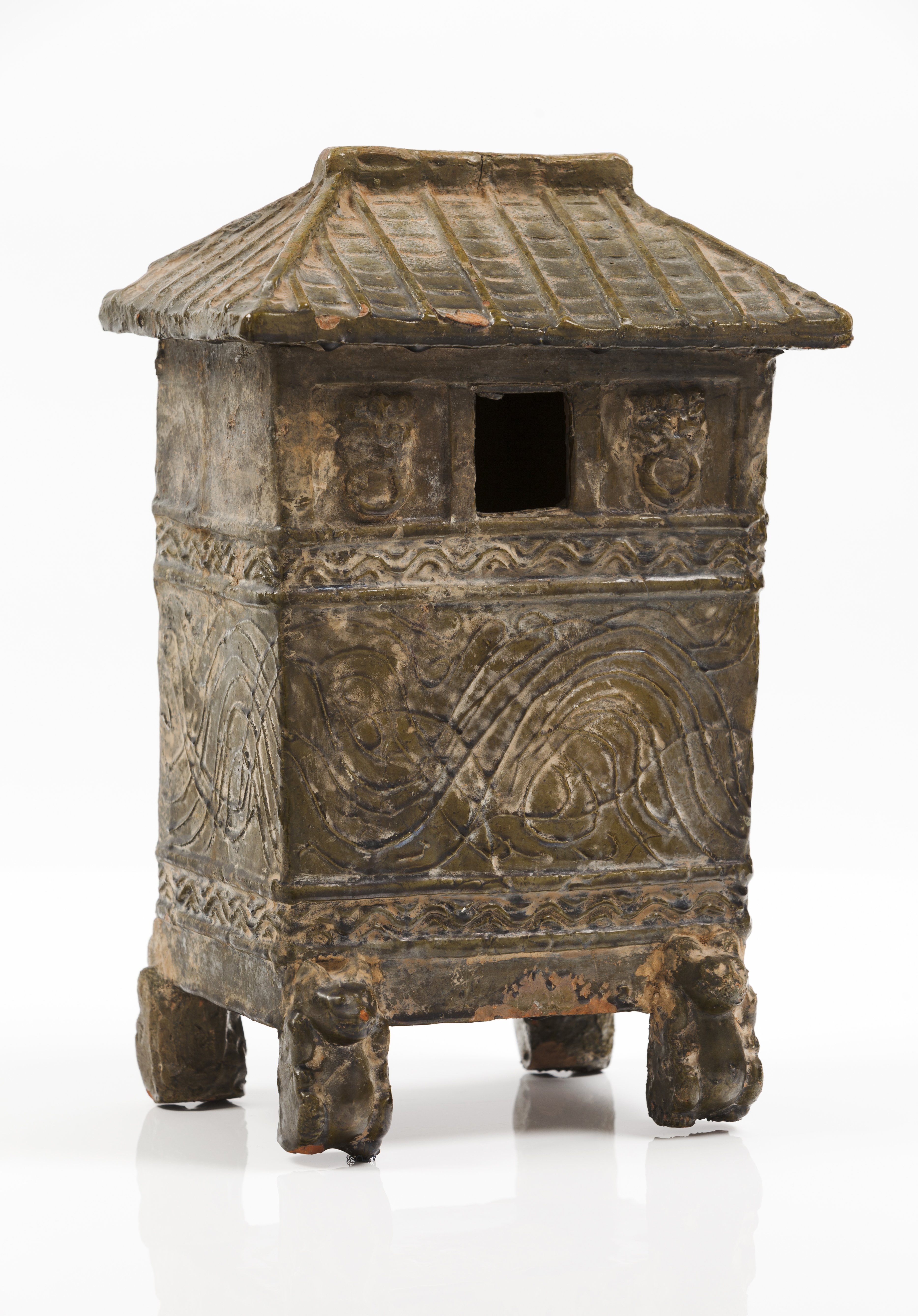 Green lead glaze of raised decoration