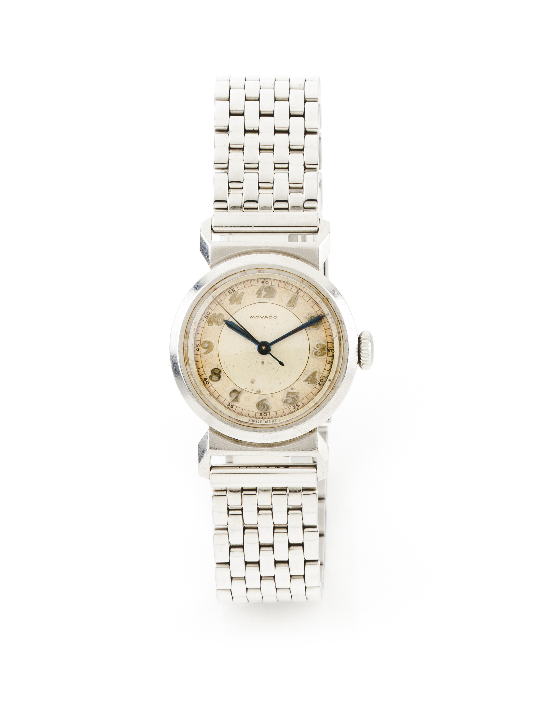 Winding mechanical movement. Stainless steel case. With wear signs. Case has a celebration engrave.