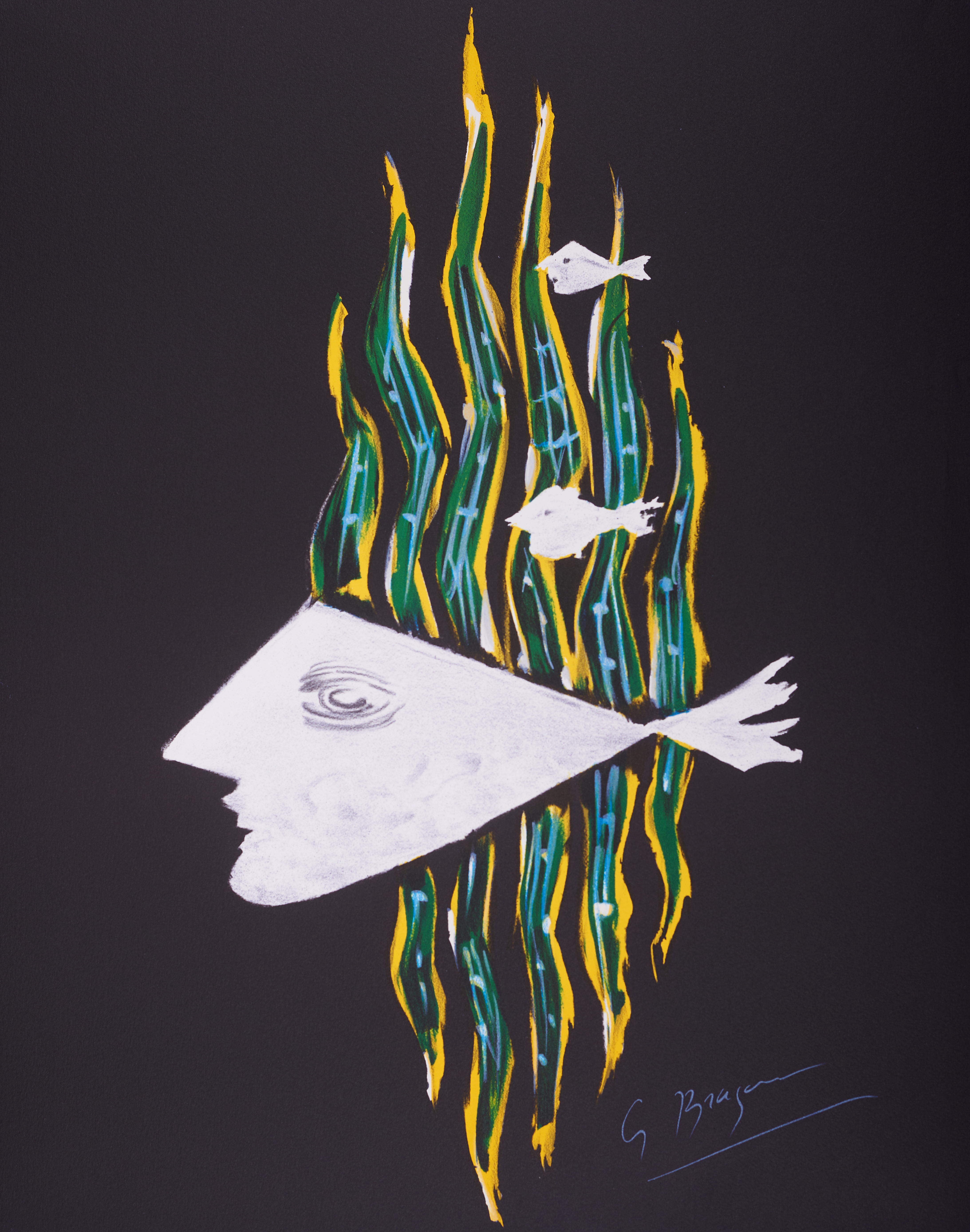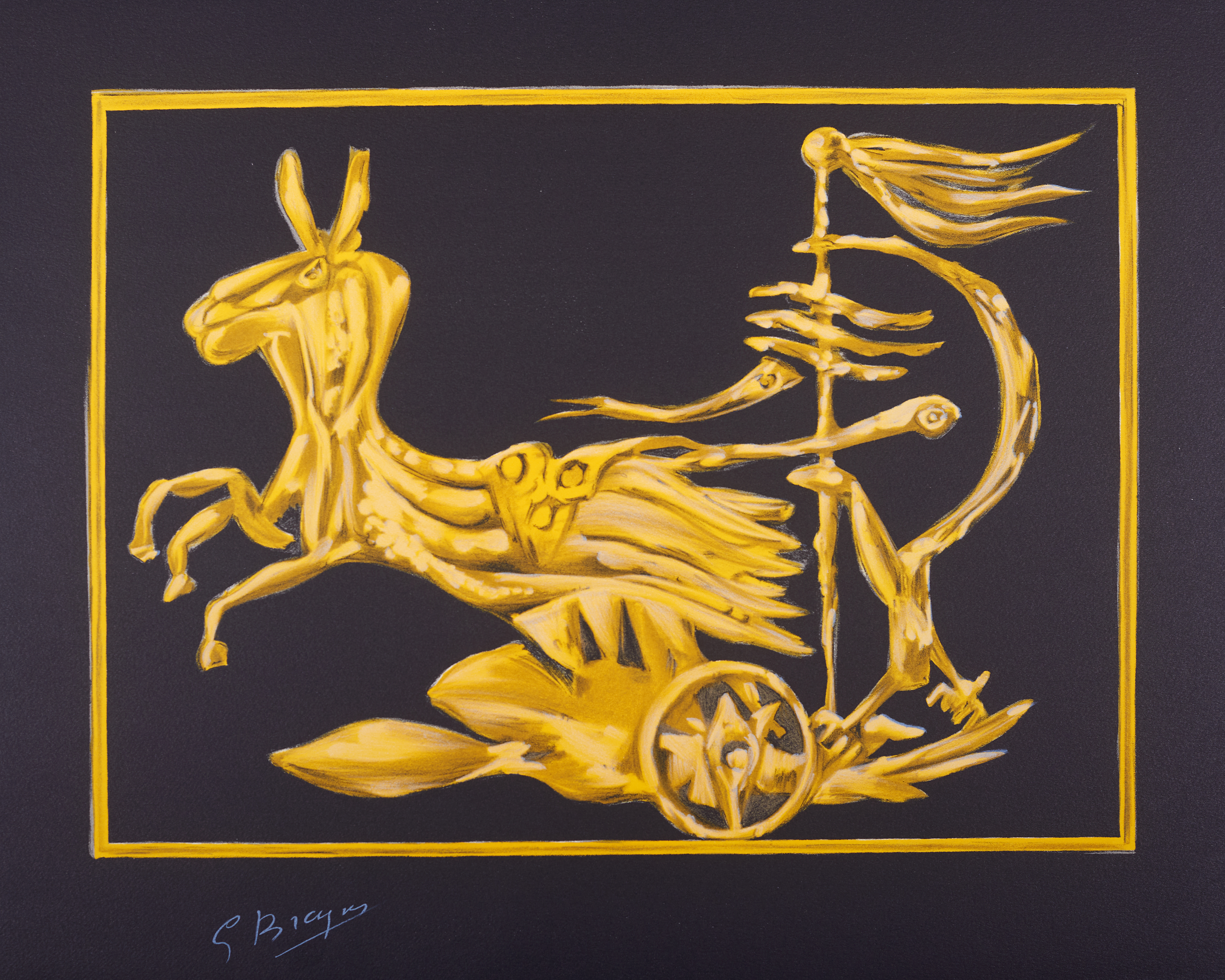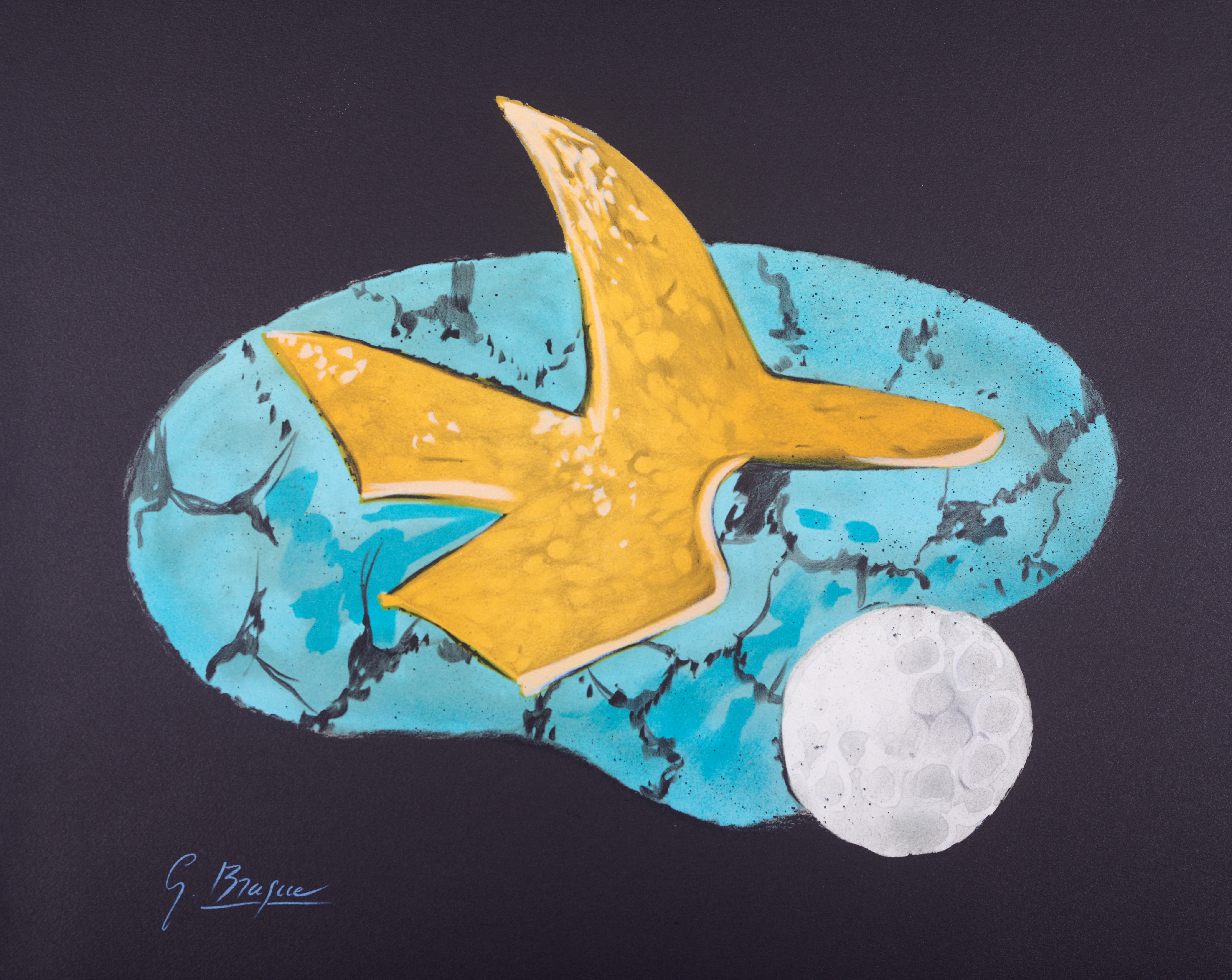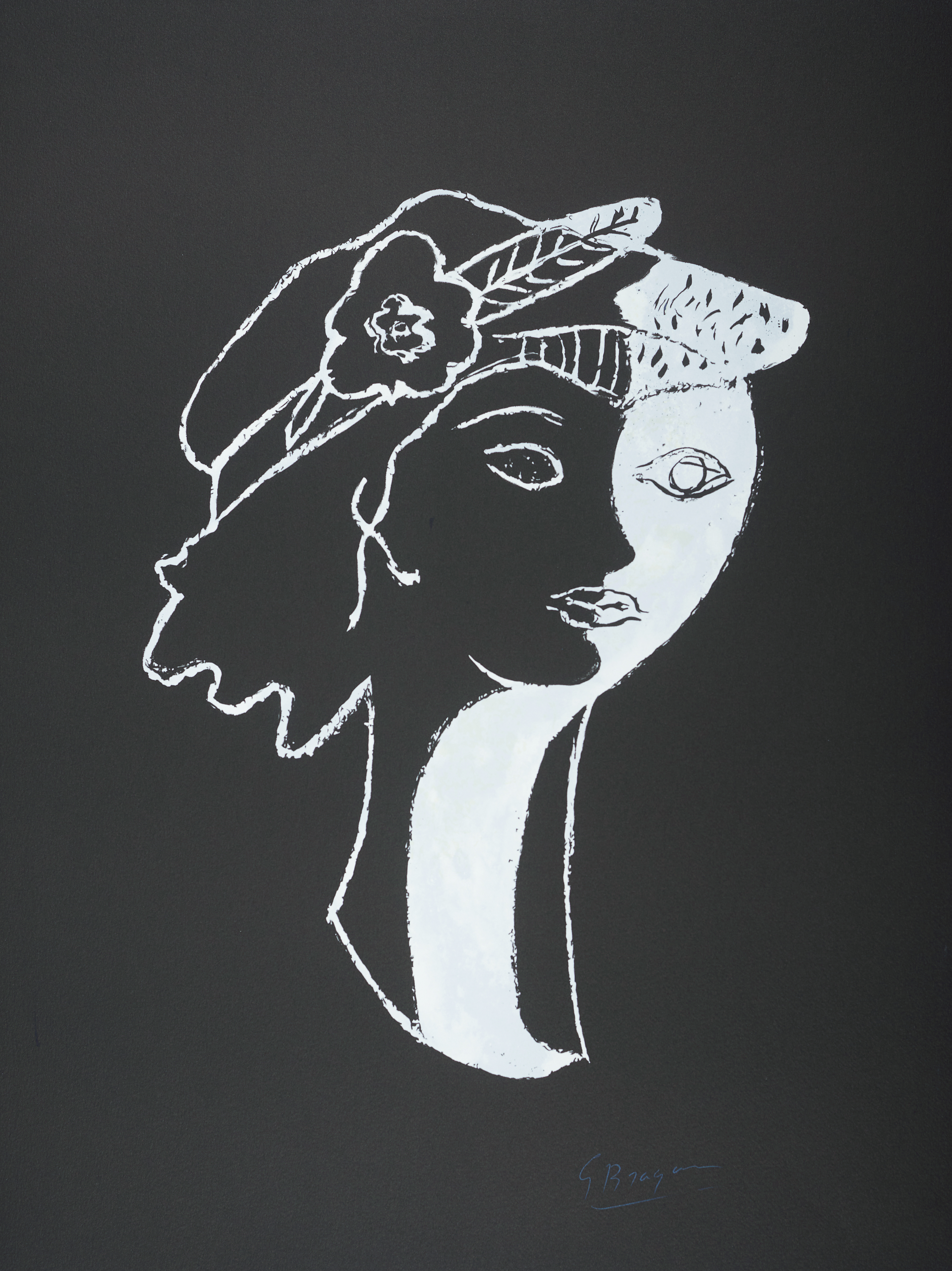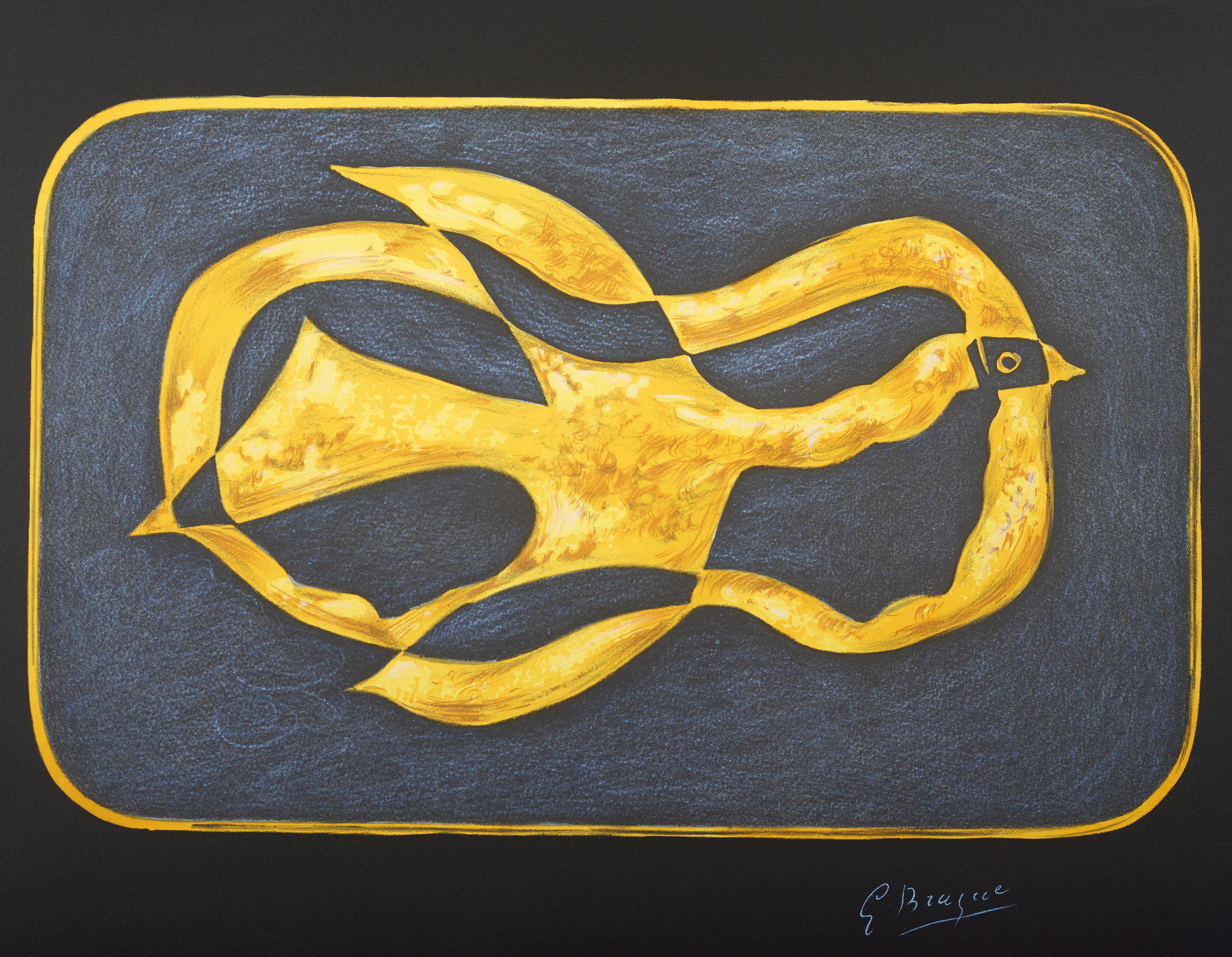 Hardcover folio comprising the text "Oedipe Roi" from Sophocles translated to french by Gabriel Boissy, illustrated with 12 lithographs (plus an extra one) from Georges Braques printed by atelier Art Litho on "grand vélin d'Arches pur chiffon" paper