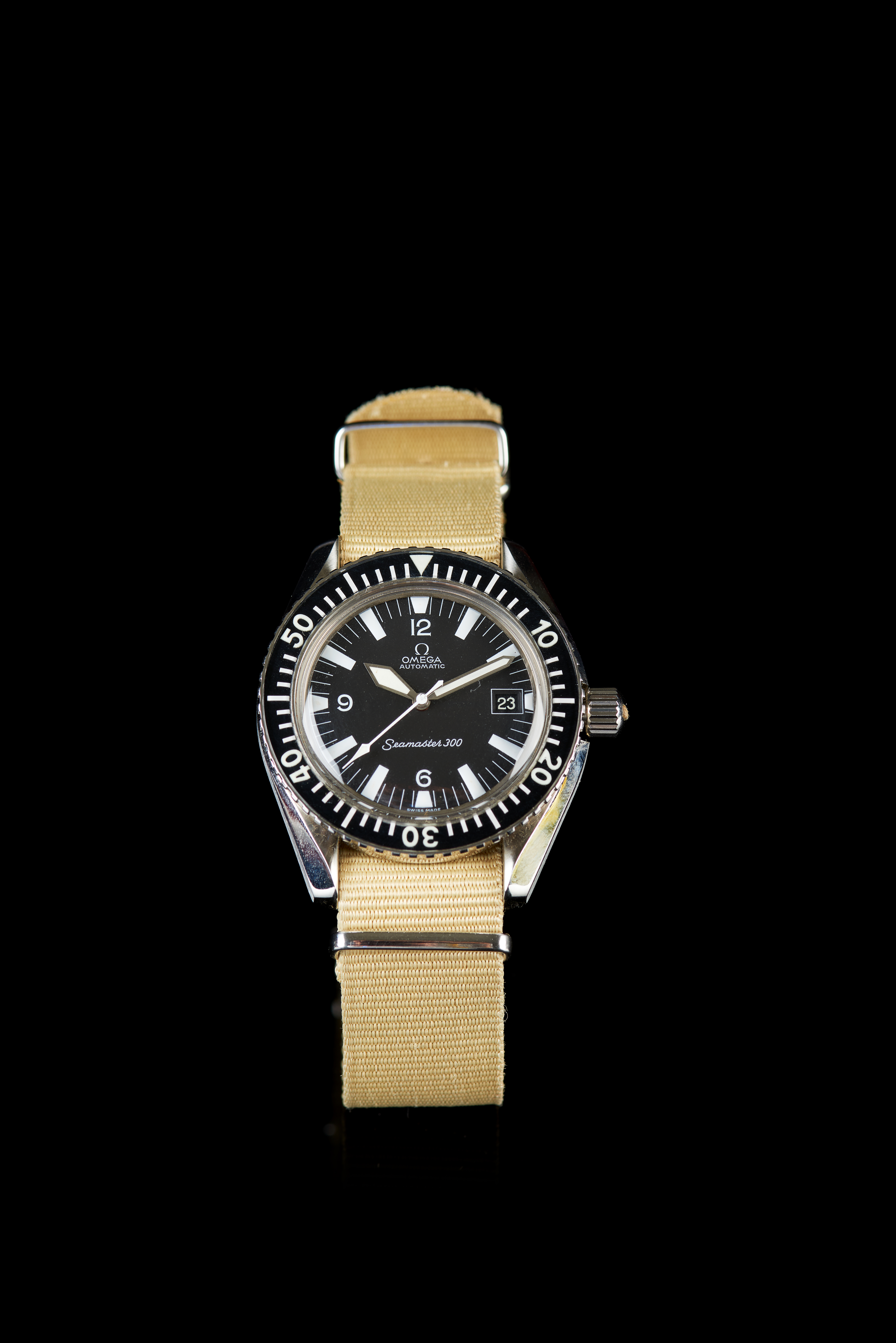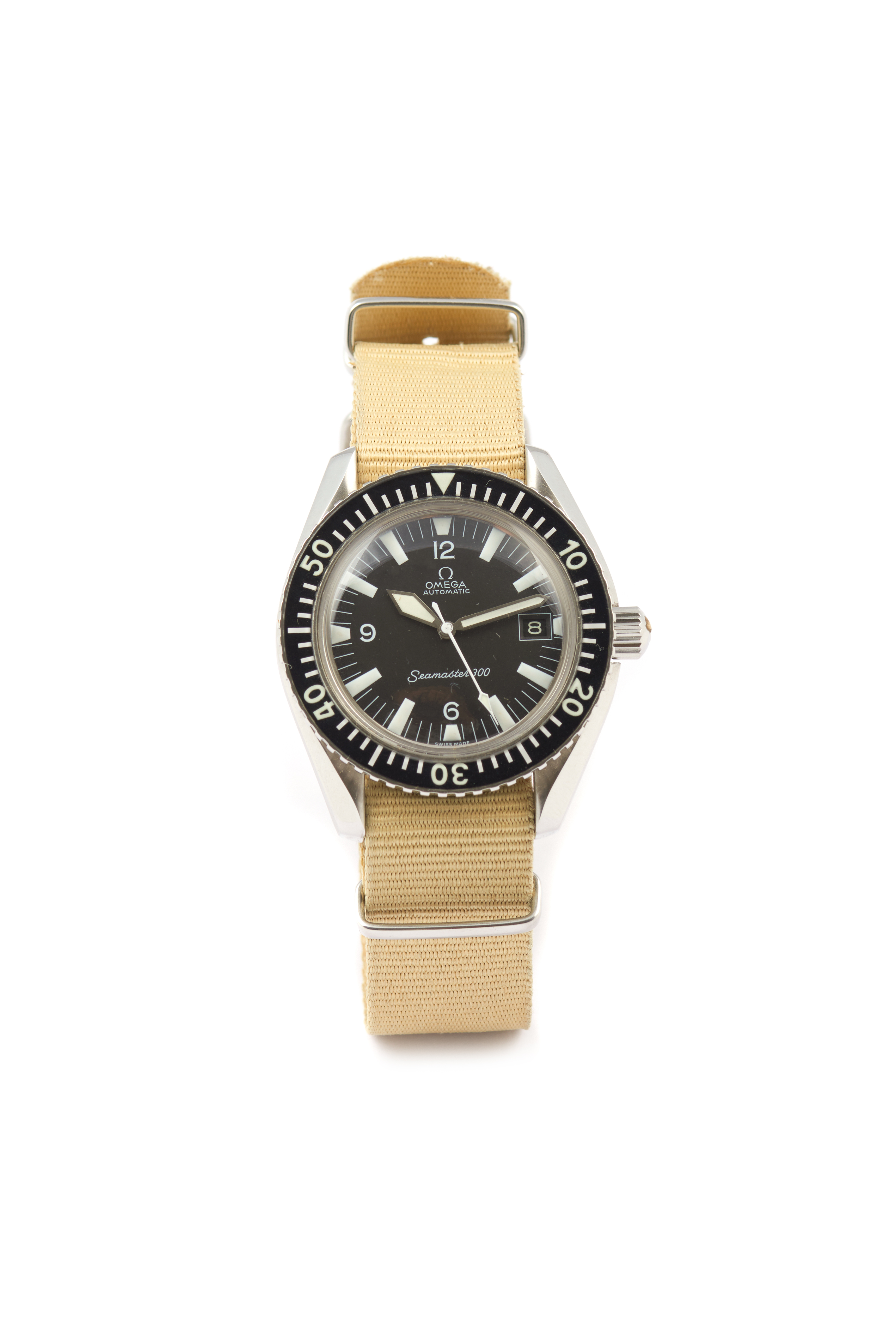 Seamaster 300 model. Automatic mechanical movement (cal. 565) with date at 15h and with serial nº 26016466. Stainless steel case with the ref. nº 055 ST 166 0324 (watch co. Australia). In excellent condition.