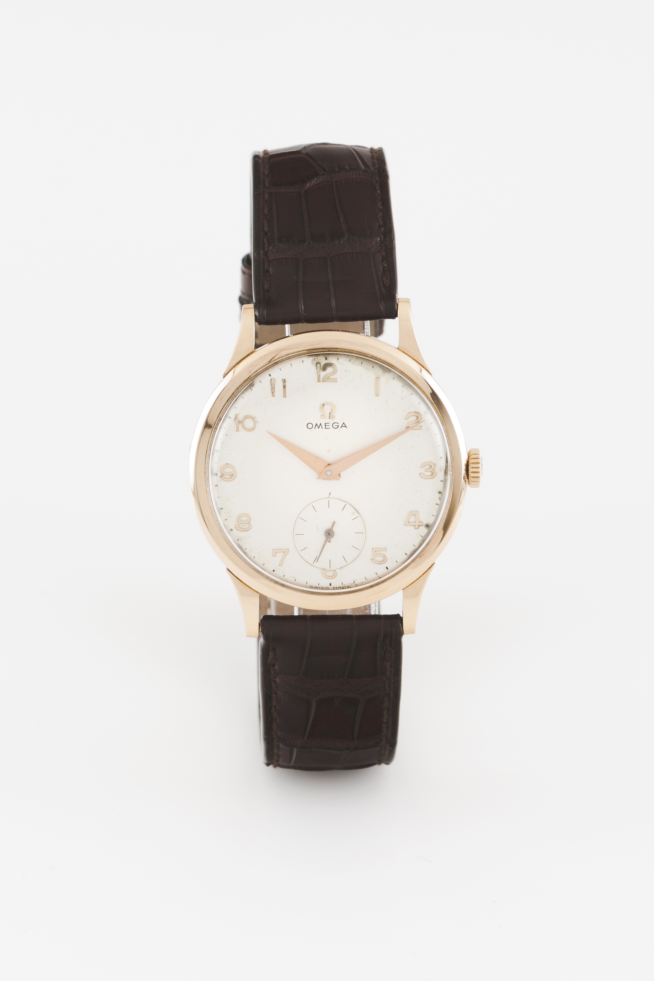 Omega watch. Winding mechanical movement (Cal.268) with serial Nº19207410. Gold (750/000) case with the Nº14707 62 in the back. With wear signs.