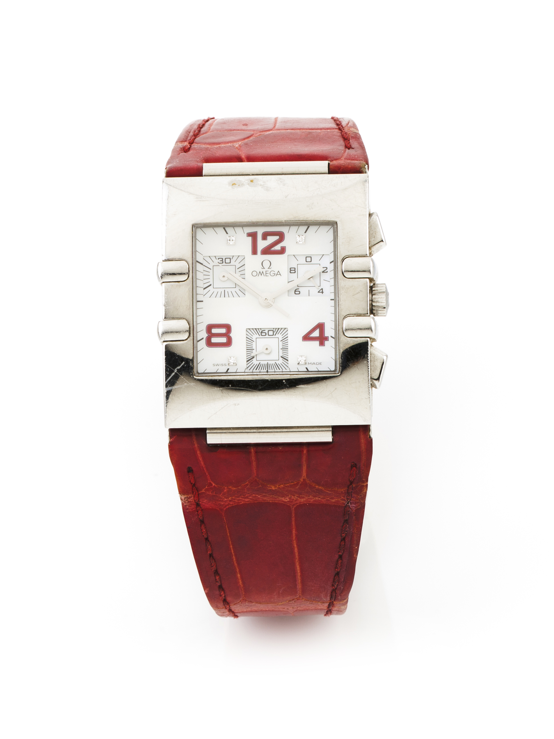 Quartz movement with chronograph function. Stainless steel case with mother of pearl dial. With wear signs.