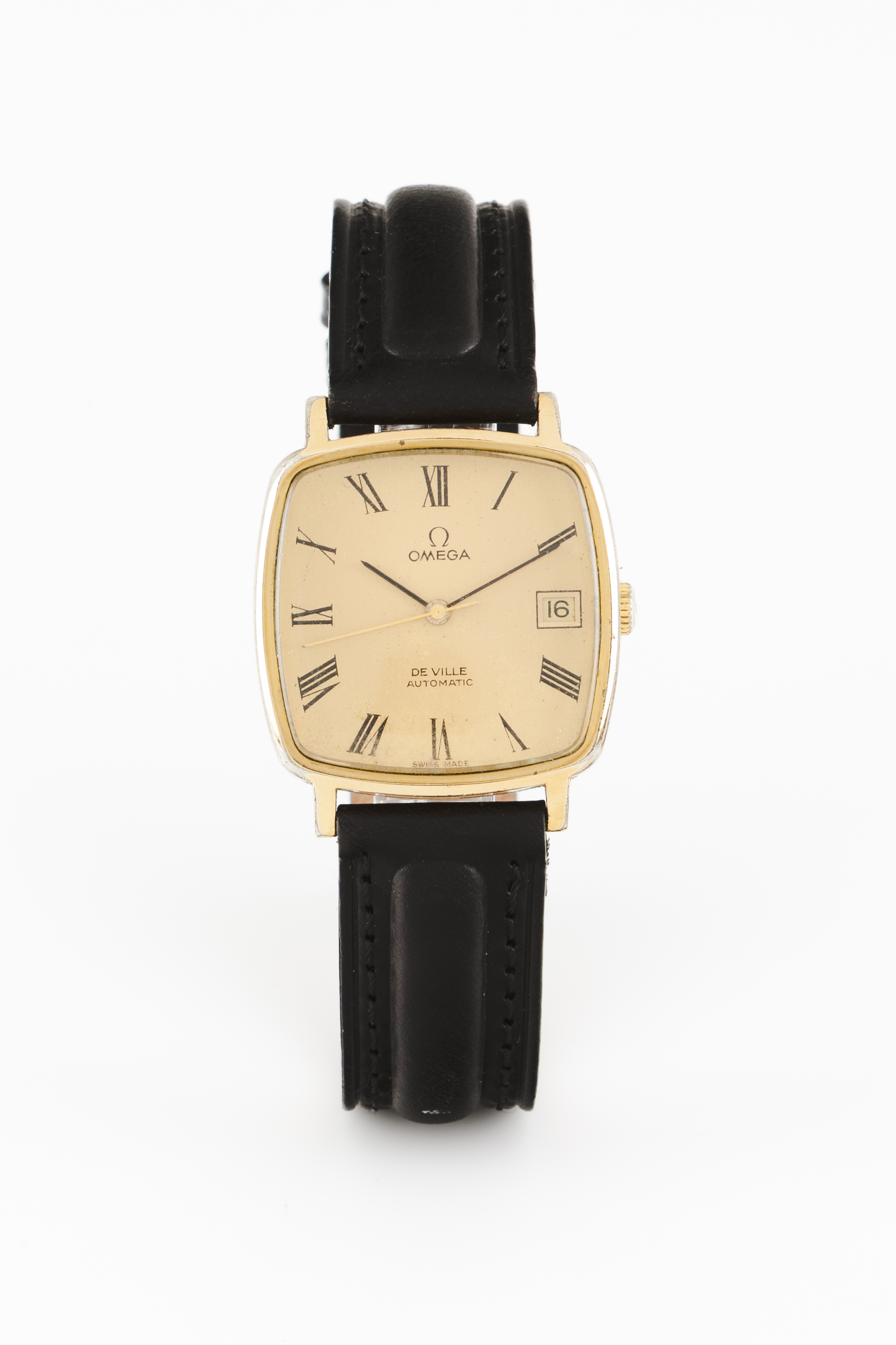 Omega watch. DeVille model. Automatic mechanical movement (Cal.1010) with date at 3h with serial Nº42342549. Yellow gold plated case with stainless steel back with the Nº162 0080. In good condition.