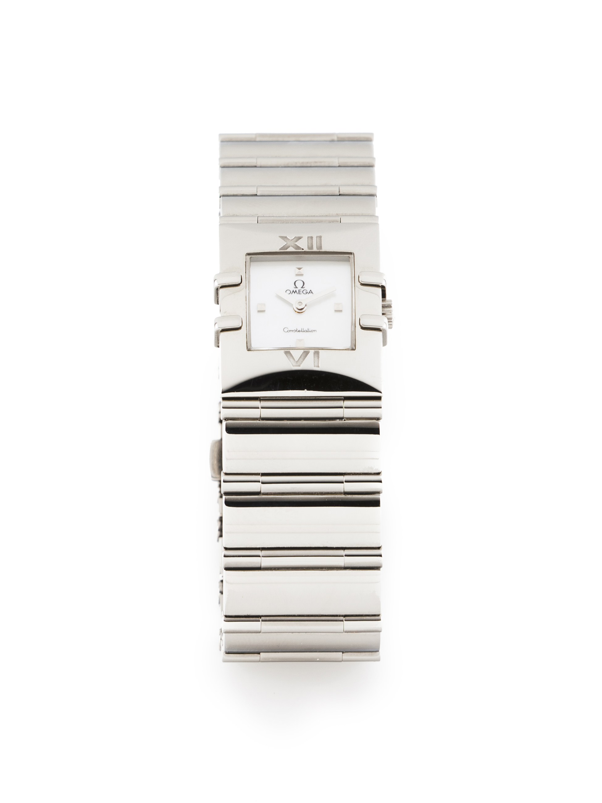 Constellation Quadra model. Quartz movement. Stainless steel case and wristband with mother of pearl dial. In good condition.