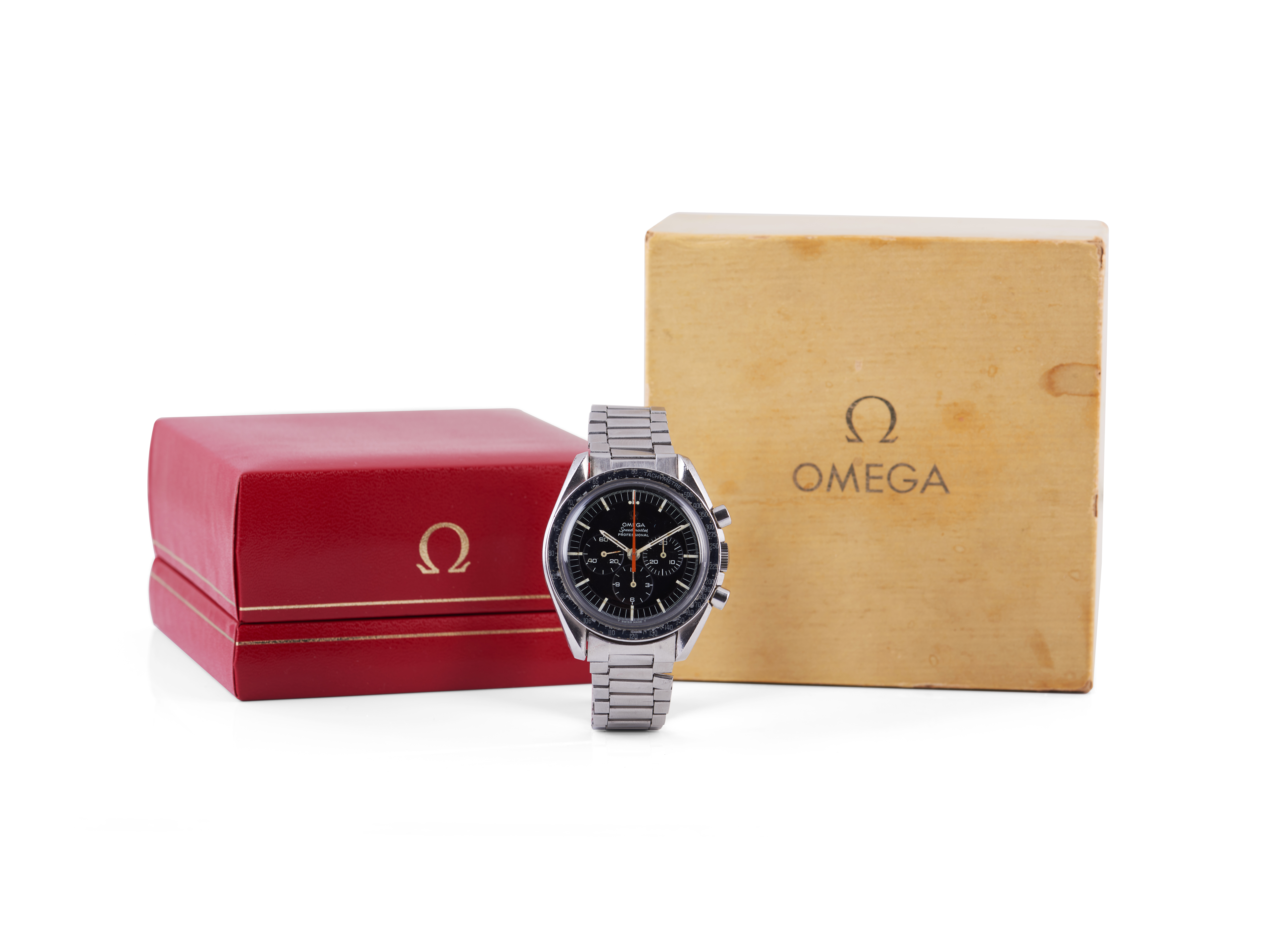 Ultraman Speedmaster Professional model with the ref. nº ST 145.012-67 SP. Winding mechanical movement (Cal. 321) with chronograph function and serial nº 26076393. Stainless steel case and wristband. With wear signs. With box and extract from the archives.