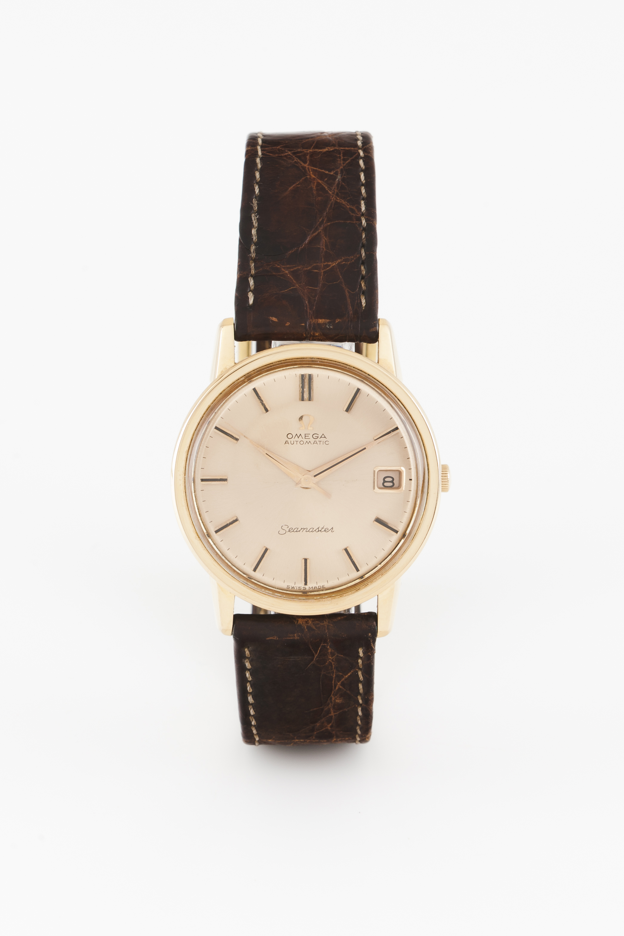 Omega watch. Seamaster model. Automatic mechanical movement (Cal.565) with date at 3h with serial Nº25388356. Gold (750/000) case with the Nº166001 in the back. In good condition.