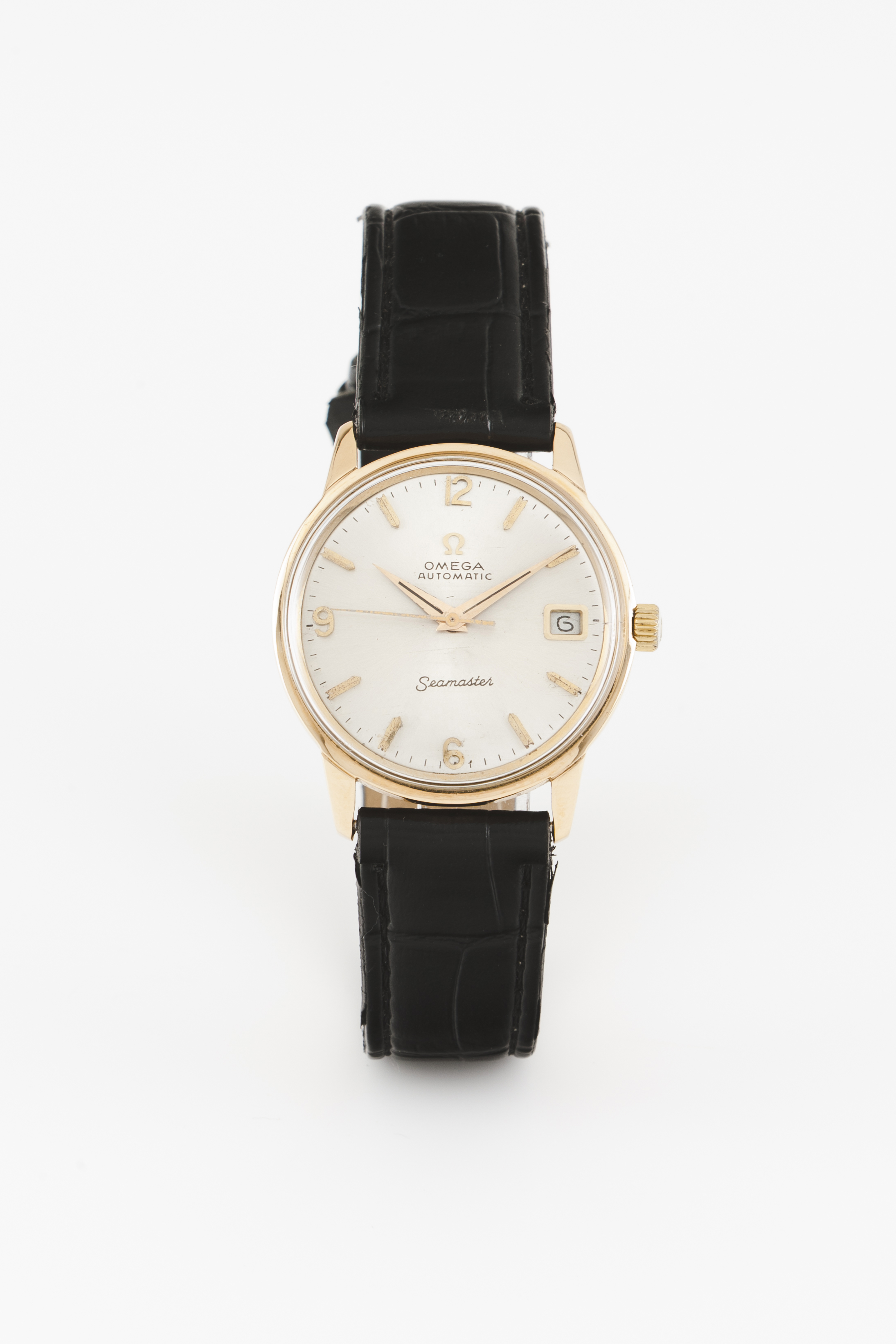Omega watch. Seamaster model. Automatic mechanical movement (Cal.565) with date at 3h with serial Nº25388356. Gold (750/000) case with the Nº166001 in the back. In good condition.