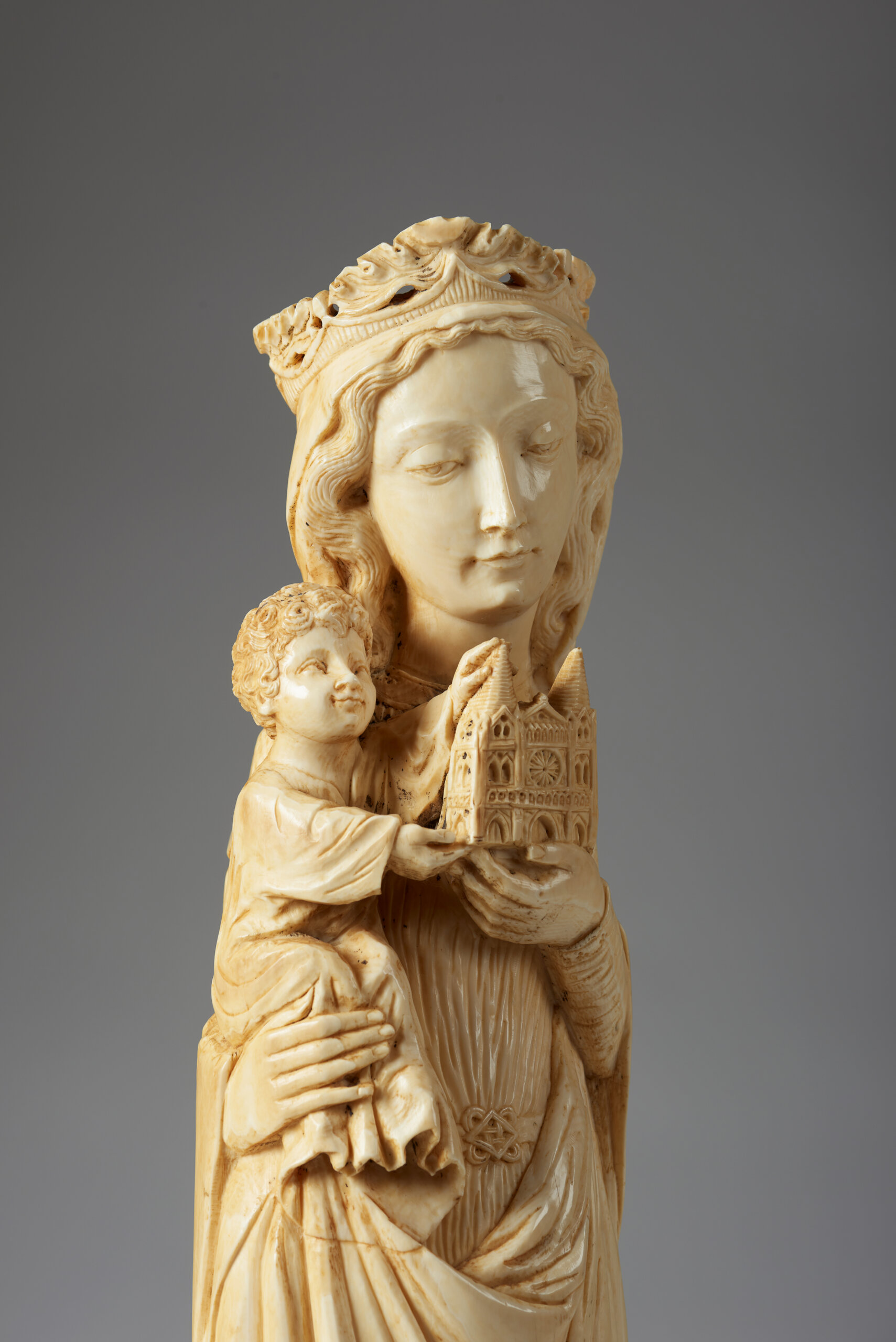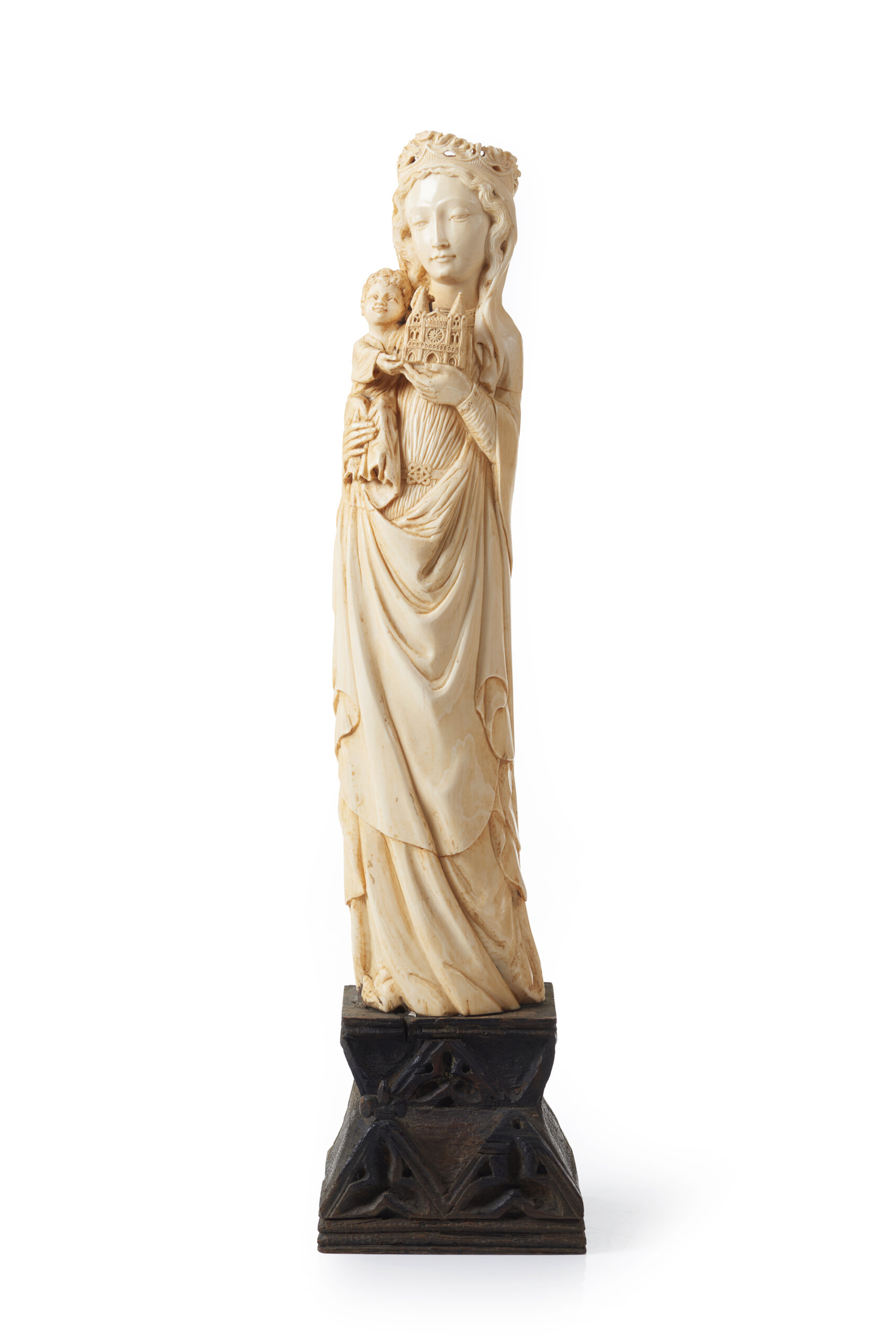 Gothic style ivory sculpture with wooden base