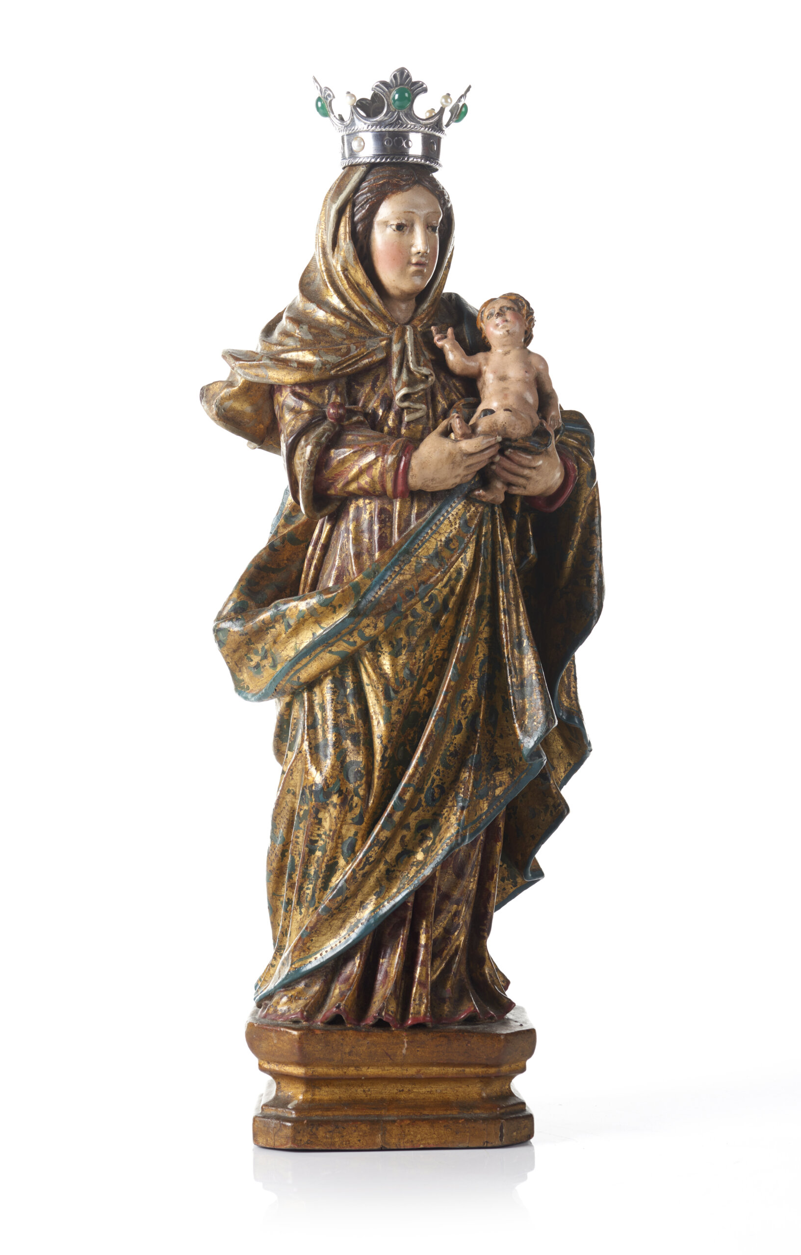 With silver crown, unmarked, bearing applications of pearls and coloured glass