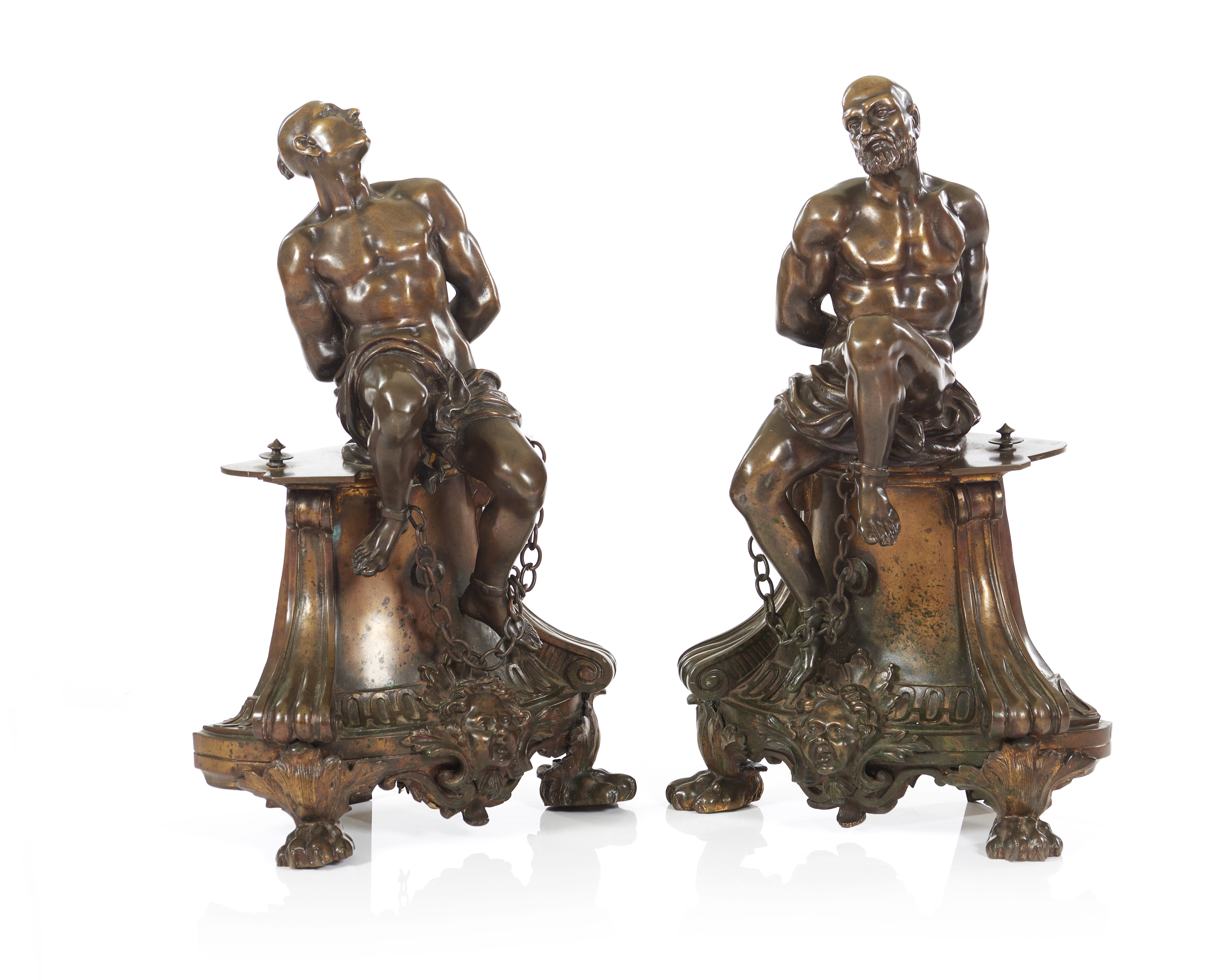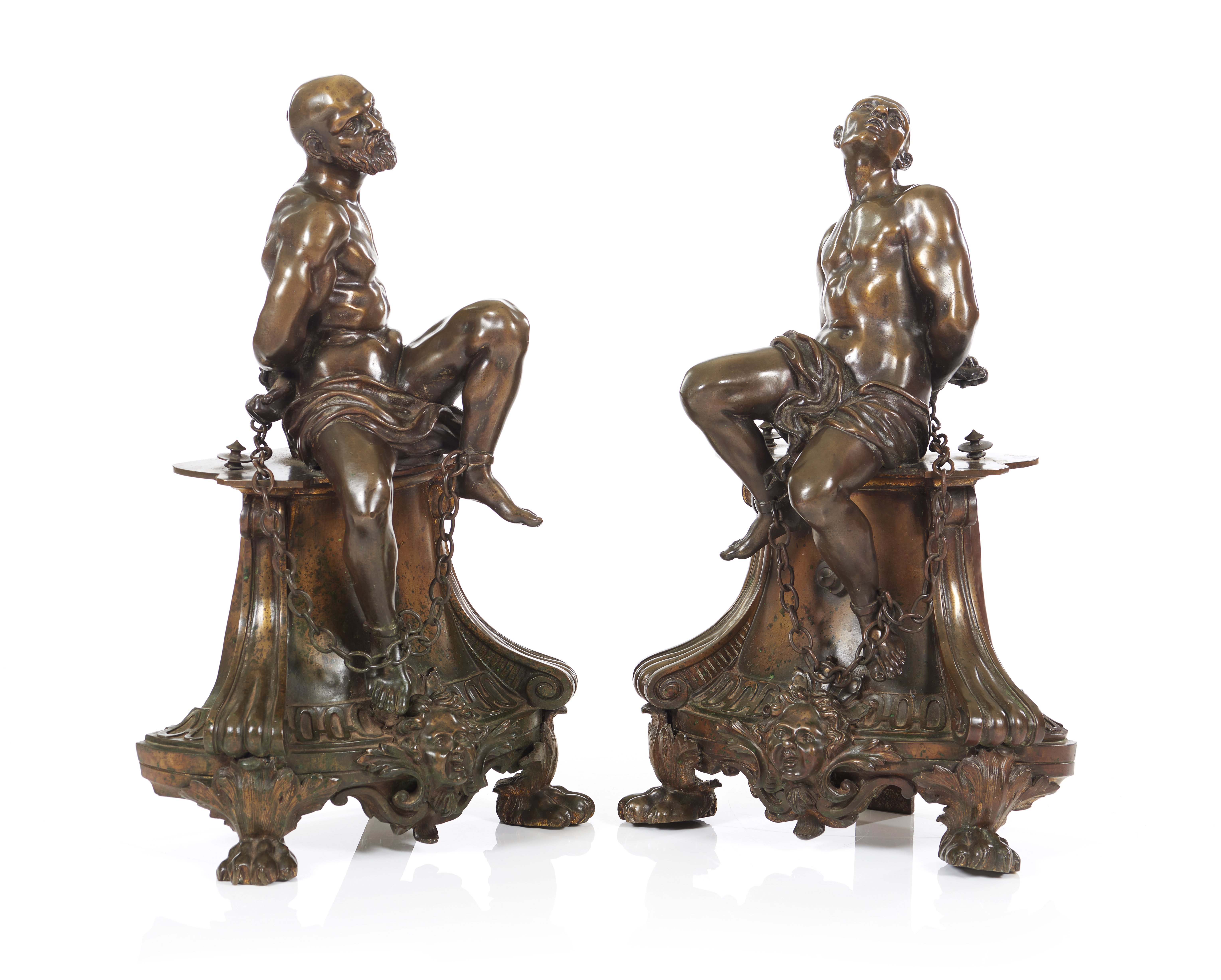 Each toped by one figure from the "Monumento del Quattro Mori" by Pietro Tacca, located in Piazza Micheli in Livorno, Italy