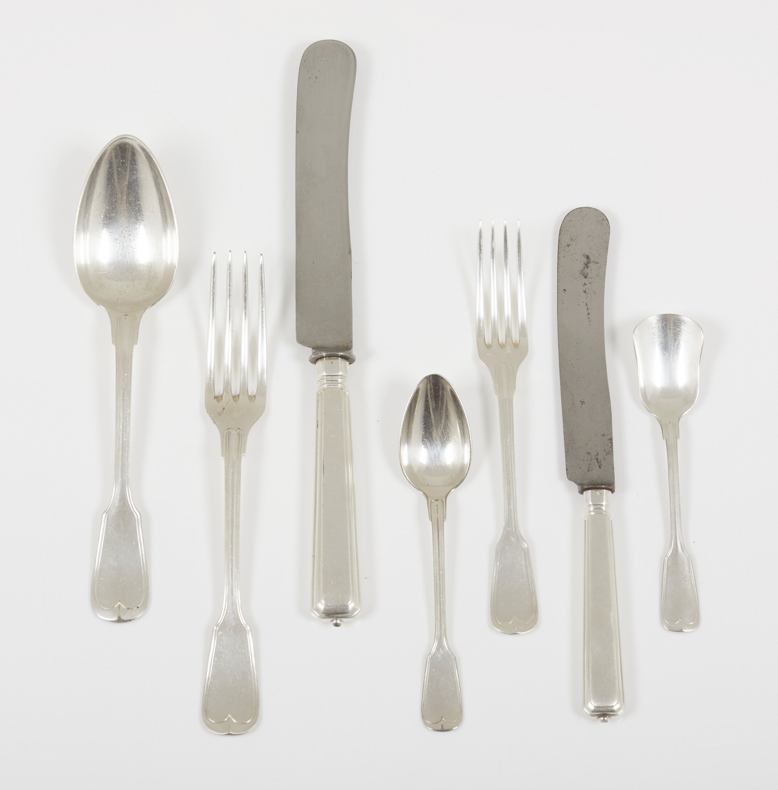 Comprising: soup spoons; meat forks and knives; dessert forks and knives; teaspoons and sugar spoon