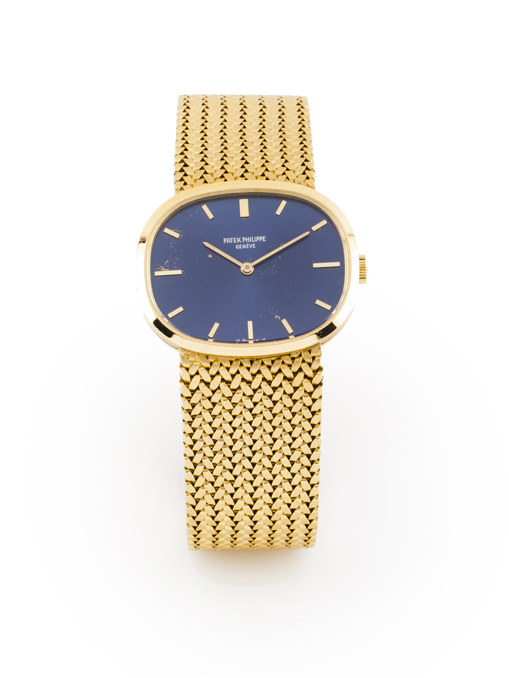 Elipse Model. Winding mechanical movement. Yellow gold (750/000) case and wristband. In good condition.