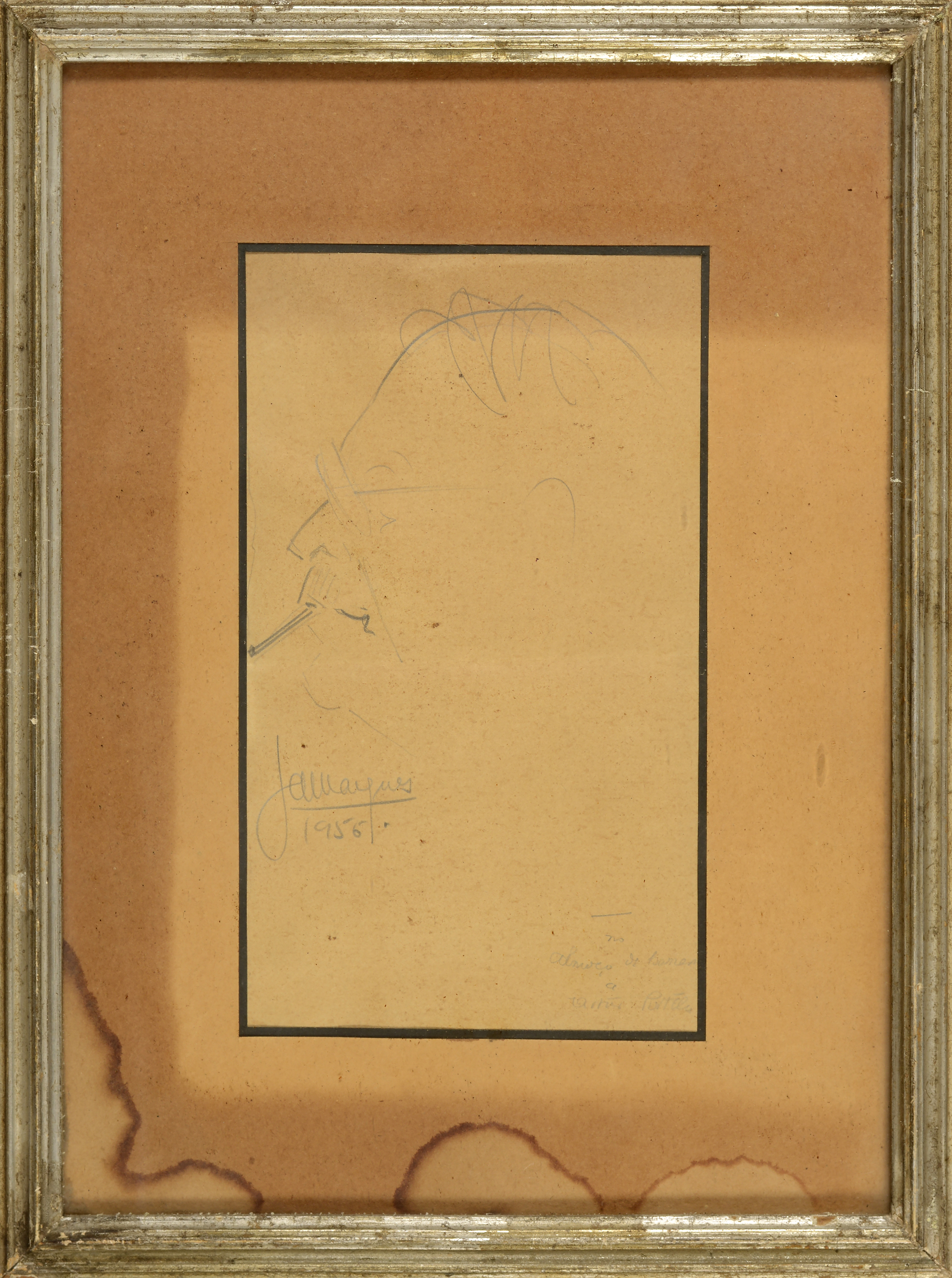Signed "J. Marques" and dated 1956 with the inscription "No almoço de Homens a Artur Portela"