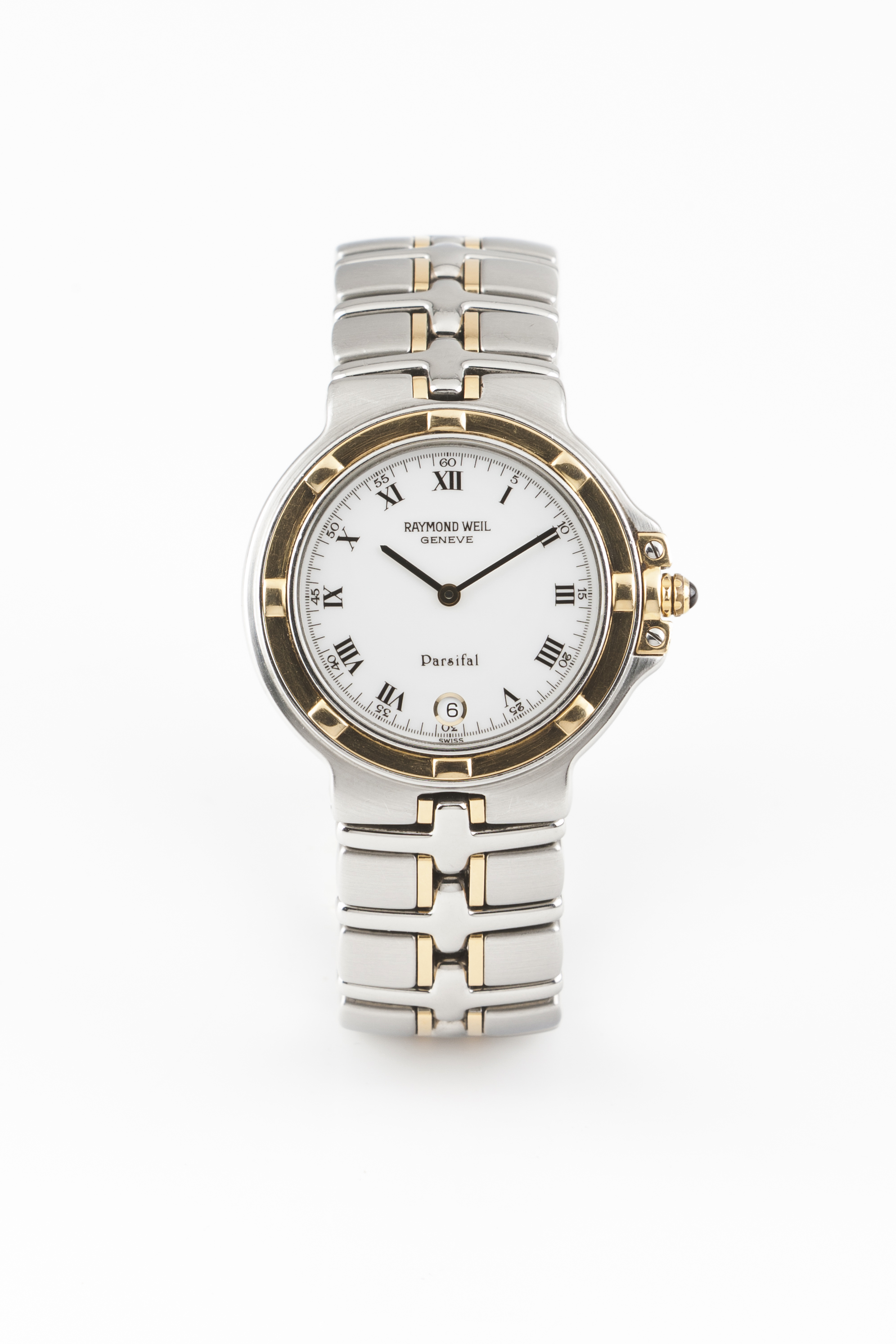 Raymond Weil watch. Parsifal model. Quartz movement with date at 6h. Stainless steel and gold case and bracelet. In good condition.