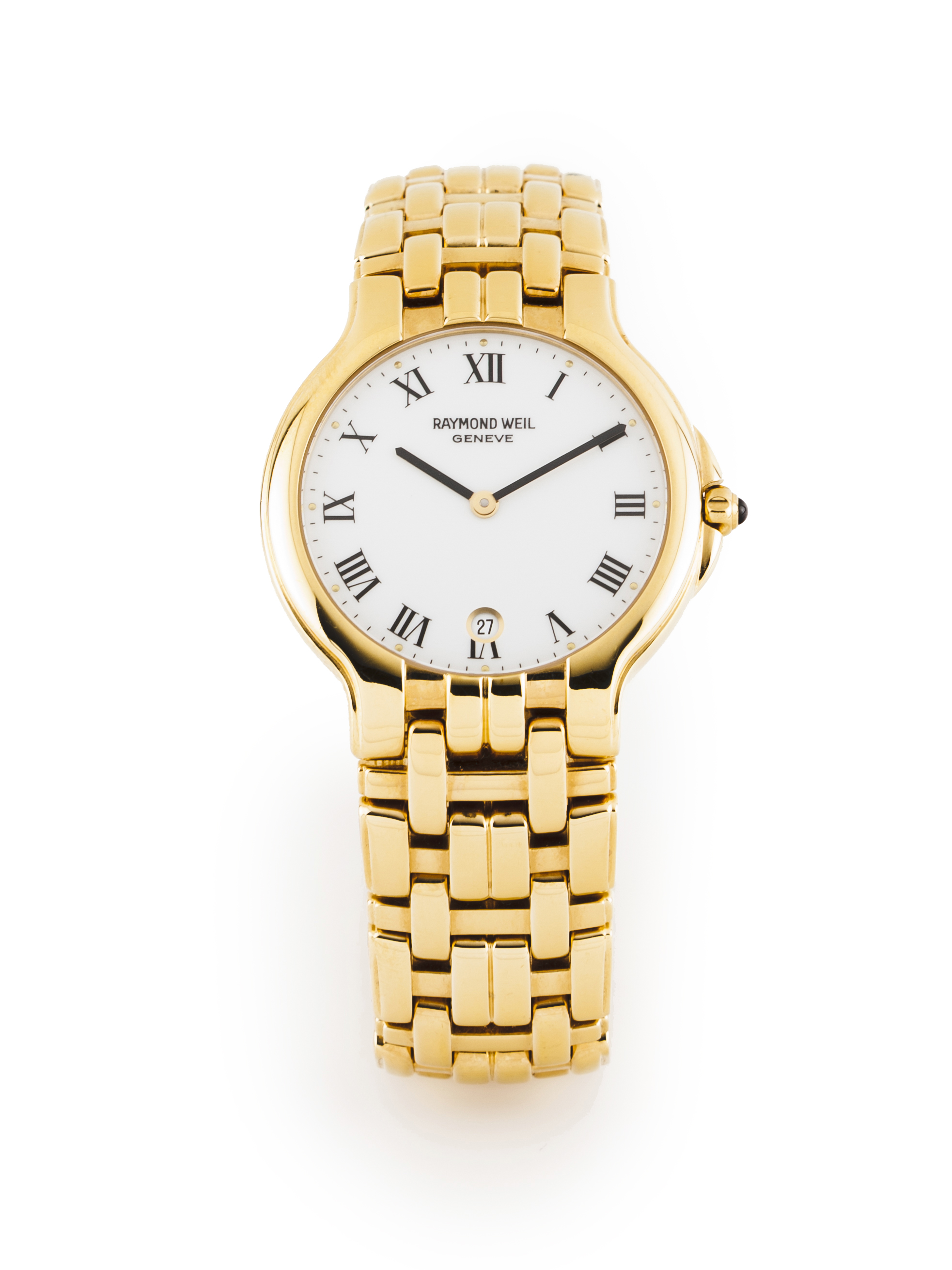 Parsifal model. Quartz movement with date at 18h. Yello gold plated case and wristband. In good condition. With box, without documents.