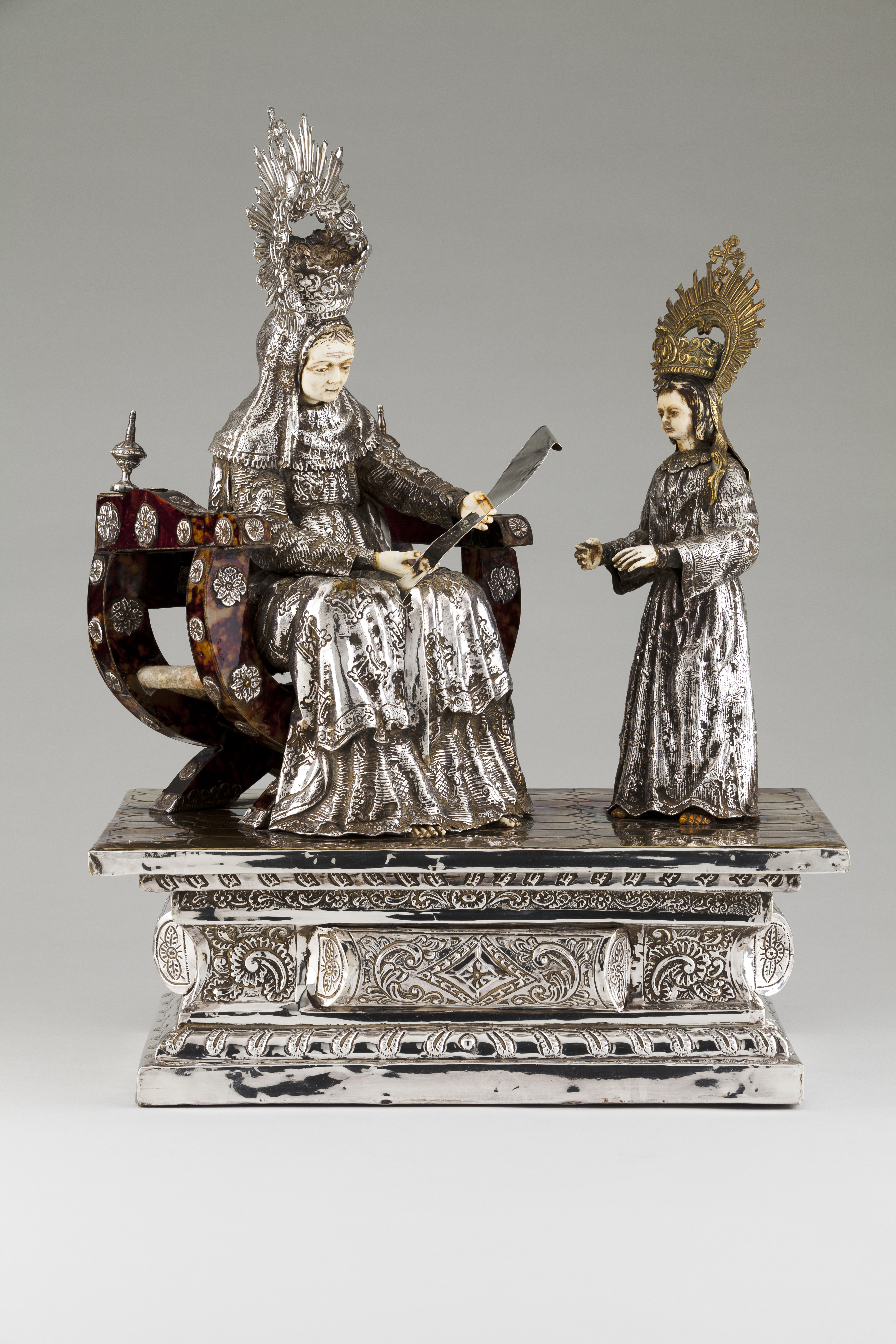 Wooden stand coated in white and gilt silver of raised and engraved decoration