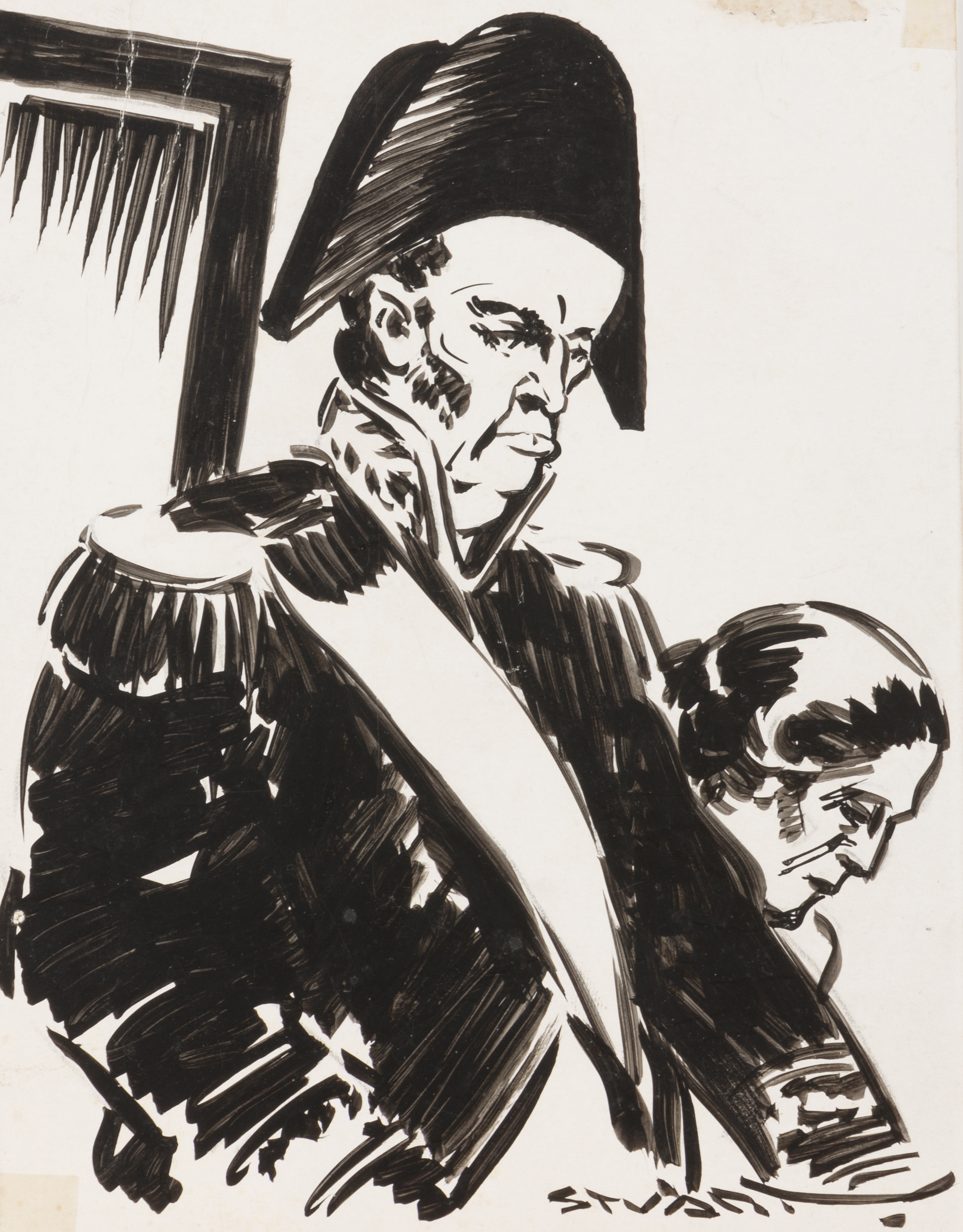 Inscription: "folhetim nº 20/ Senhor pai, é Sua Altéza que desce?! / Já lá está um para o próximo folhetim mas parece mal não sair um desenho com o retrato do Carlôto Joaquim"