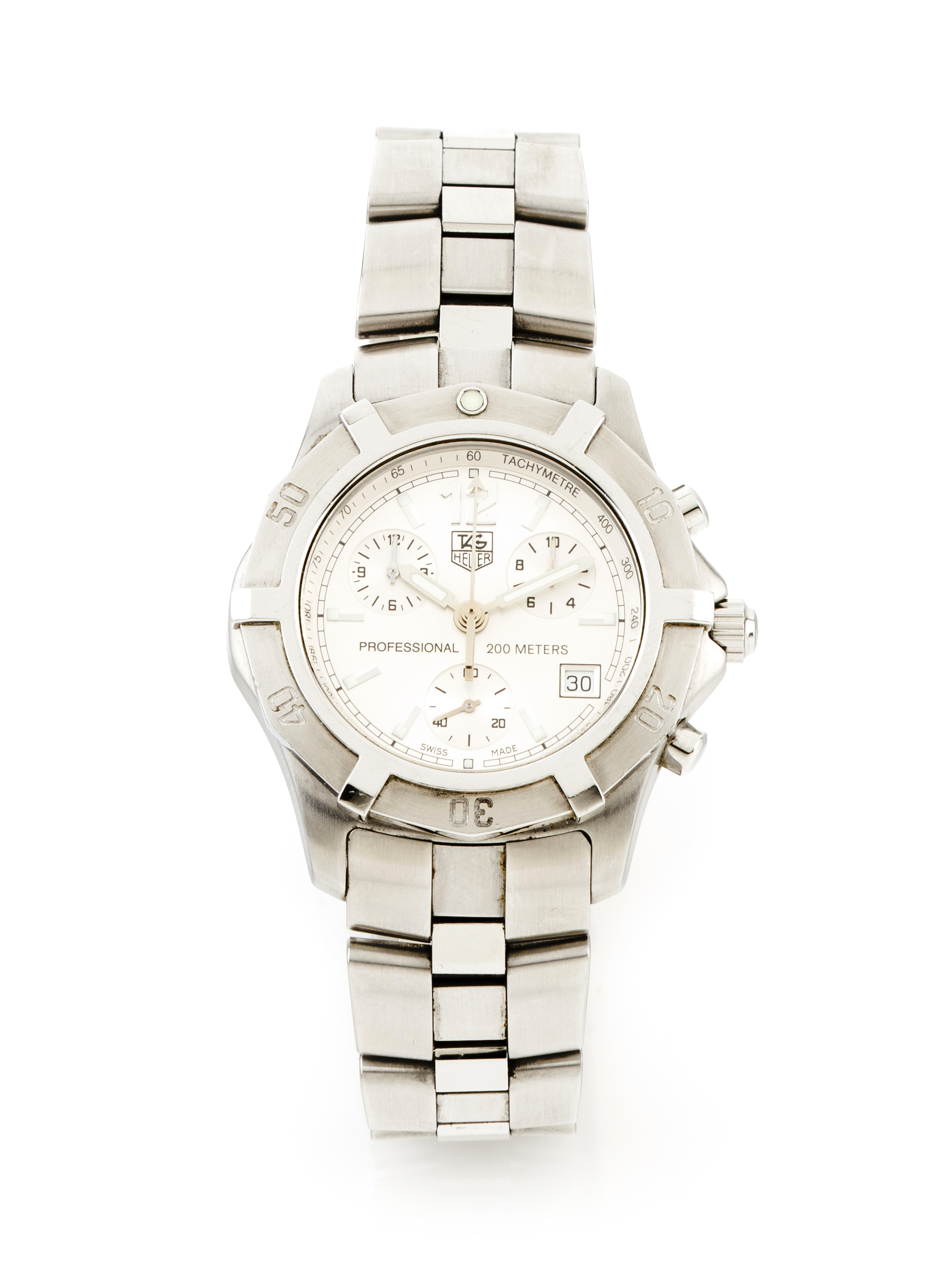Model with ref. NºCN1111. Quartz movement with chronograph function and date at 16h/17h. Stainless steel case and wristband. With wear signs. With box.